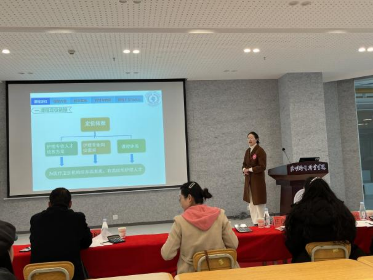 各位参赛老师按抽签顺序依次上台展示,从课程定位、教材分析、教学目标的设置、教法学法的设计、教学实施等多个方面进行详细地阐述。参赛教师们教态自然稳重、语言简洁流畅,说课结构完整,充分展现了学院教师们饱满的精神状态和良好的专业能力。