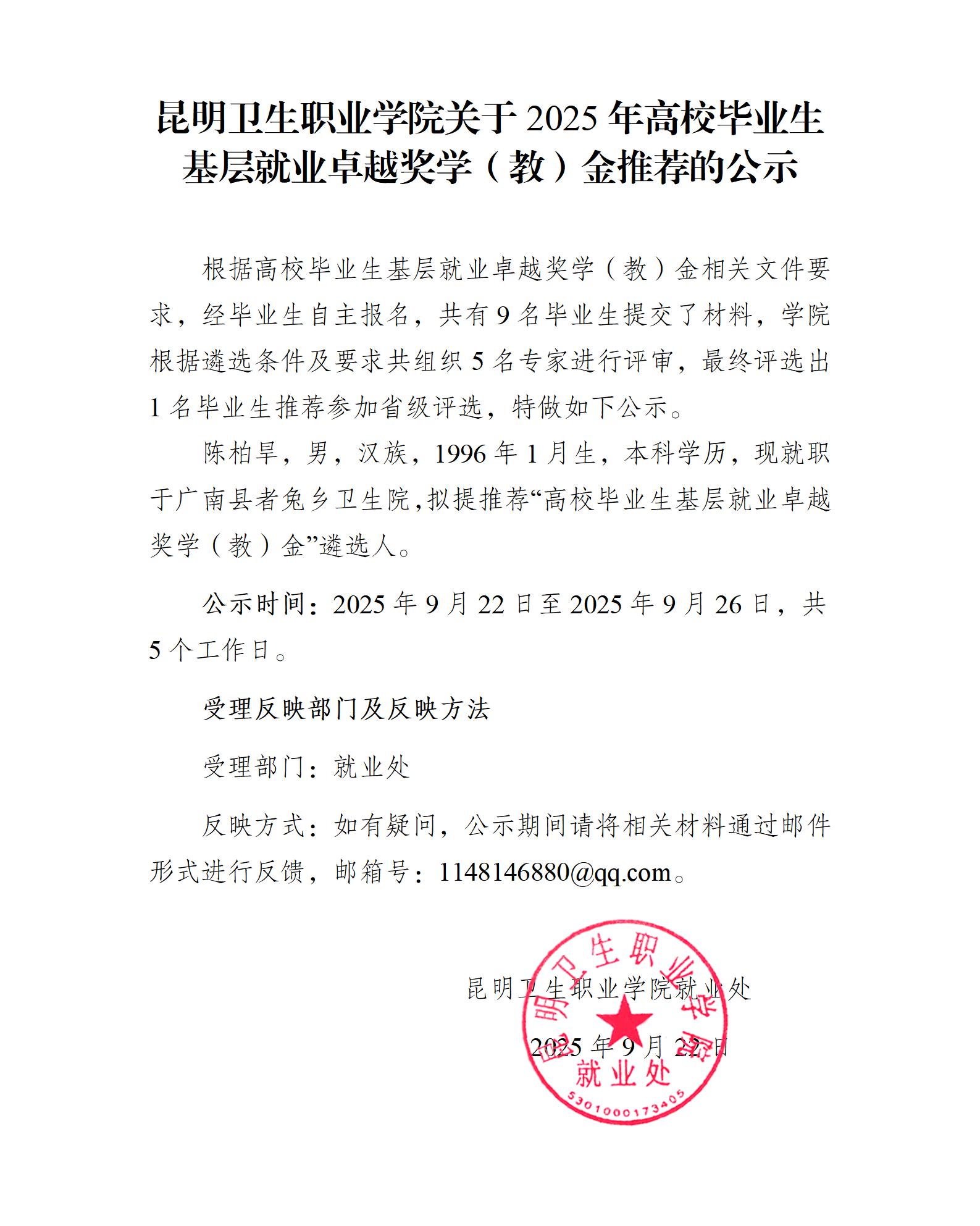 XK星空关于2025年高校毕业生基层就业卓越奖学(教)金推荐的公示