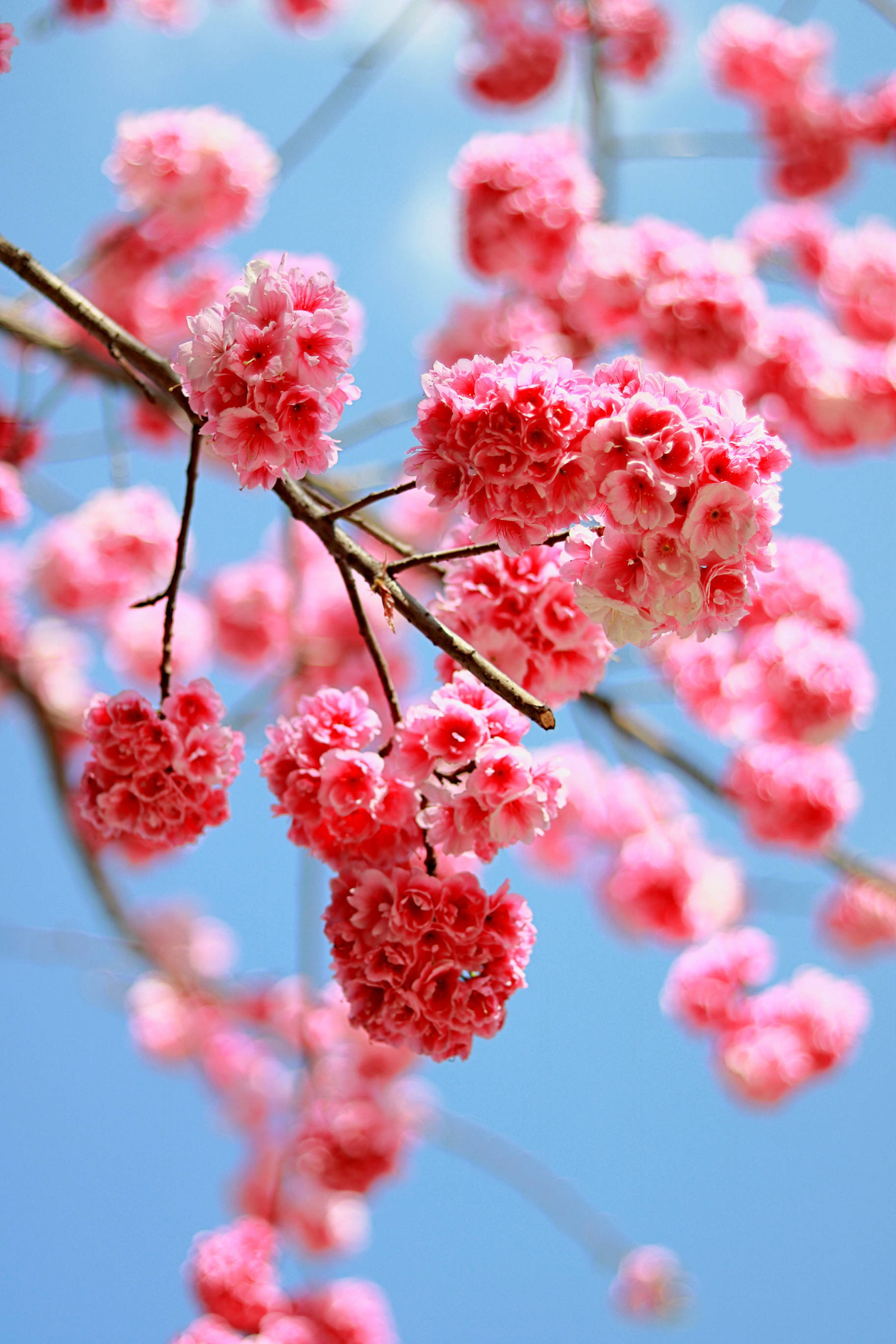 三月里的一抹红,红而不淡,娇而不妩媚,淡淡的花瓣,粉粉的花蕊,蓝蓝的屋顶,你是否也一见倾心,总有阳光会将其填满,三月,唯美,婉约,灿烂,总会有新的开始,轻轻三月,樱花初定,重现美丽昆卫,希望生活,如你所愿啊,愿岁月与你厚待,你永远爱笑。
