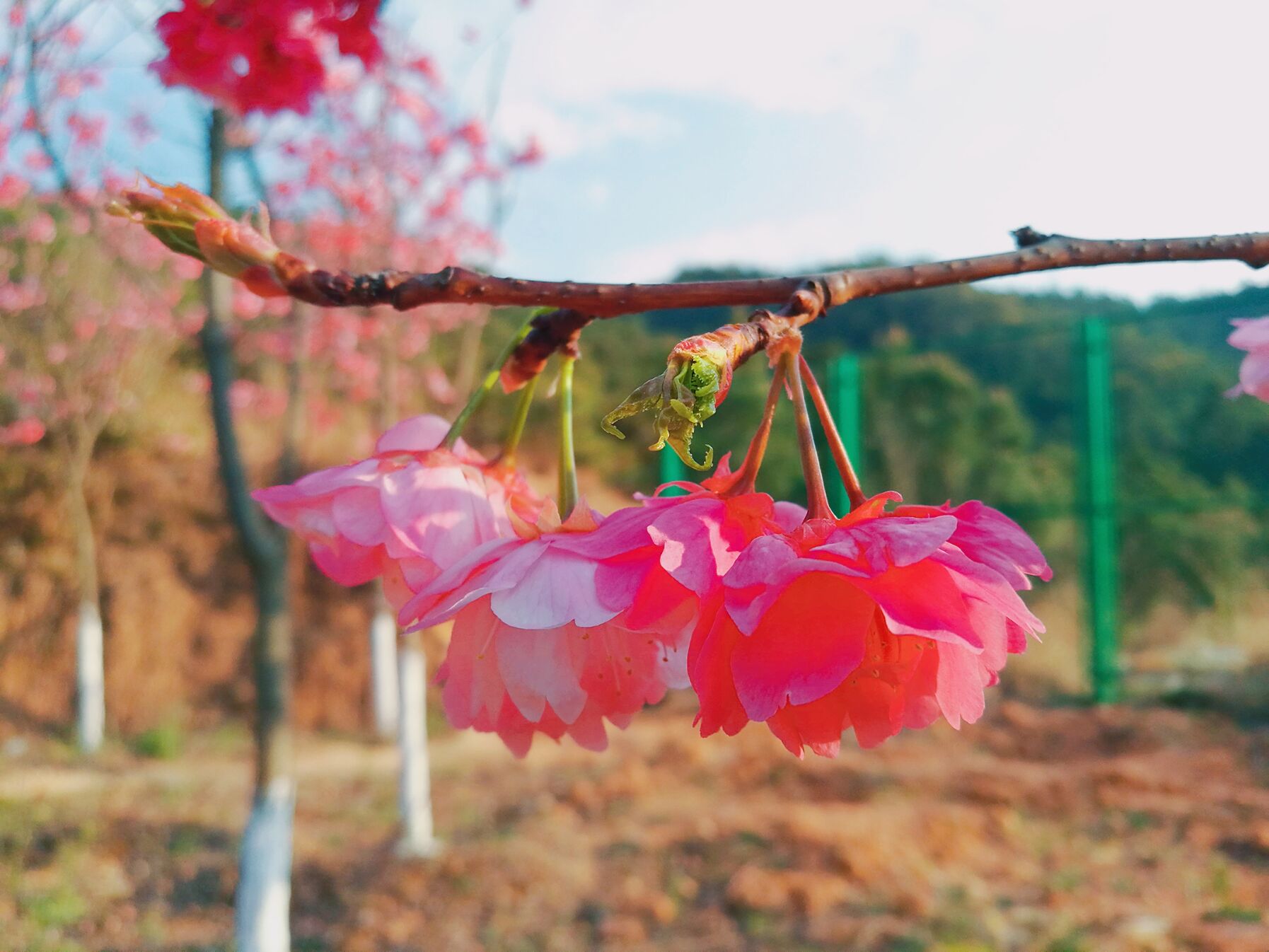 某日上课,正讲到“风暖熏开花万朵,醉人寰。似锦嫣红盈媚眼,幽香淡淡逗蜂巅”处,转头时,窗外一树粉嫩青红撞入眼帘,恰巧春风拂过,花颜仿似一瞬绽开,不觉回首,已是疲态顿消,笑容满面。