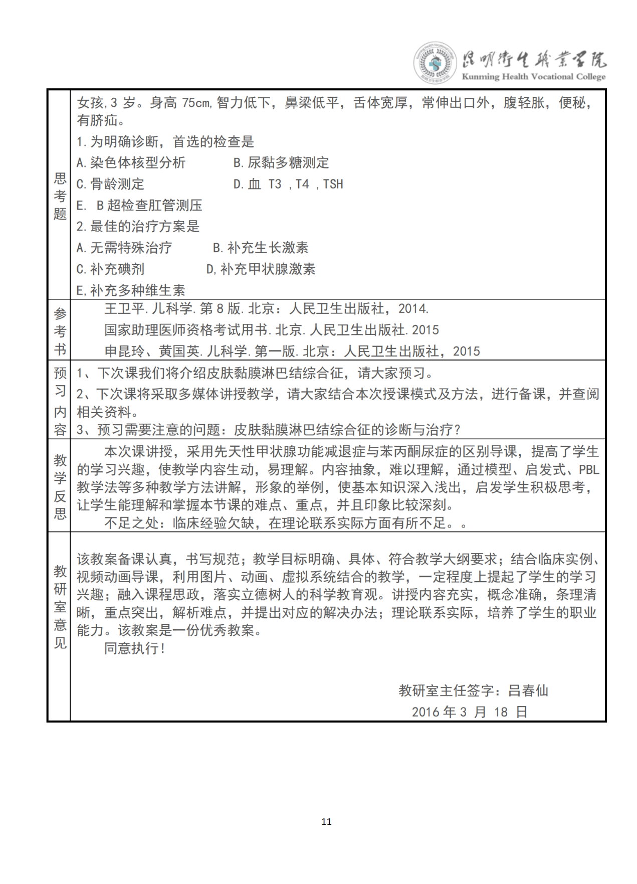 《先天性甲状腺功能减退症》教案(儿科学)