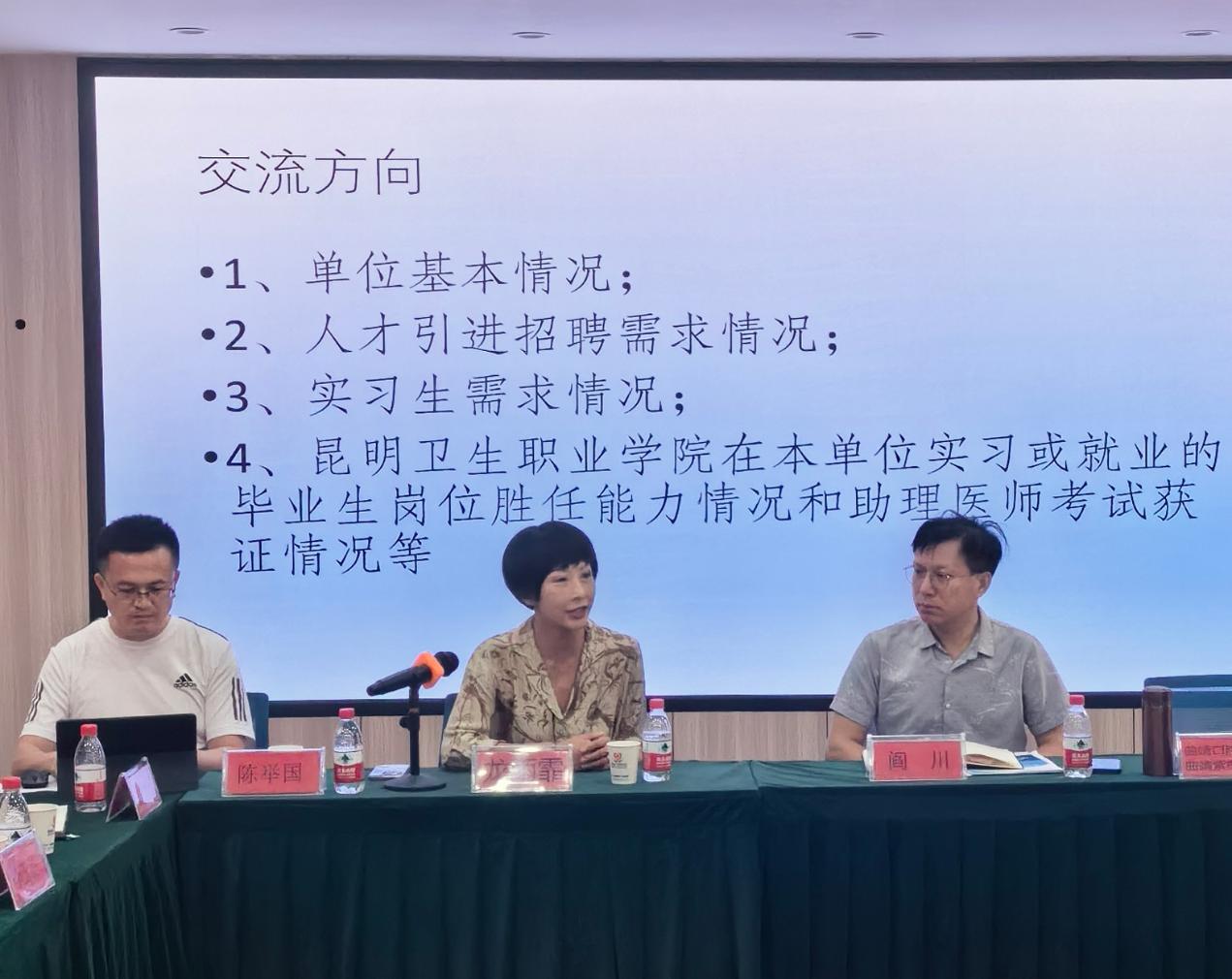 为拓宽学院毕业生就业渠道,促进毕业生充分稳定就业,4月30日,学院党委副书记、院长龙雨霏,副院长陈举国、张尤松、李玉晶,学院工会委员会主席、口腔学院院长虎志辉,口腔学院直属党支部书记、副院长骆毅,就业处处长施建飞等一行7人赴曲靖地区民营医疗机构开展“集中访企拓岗”交流活动。