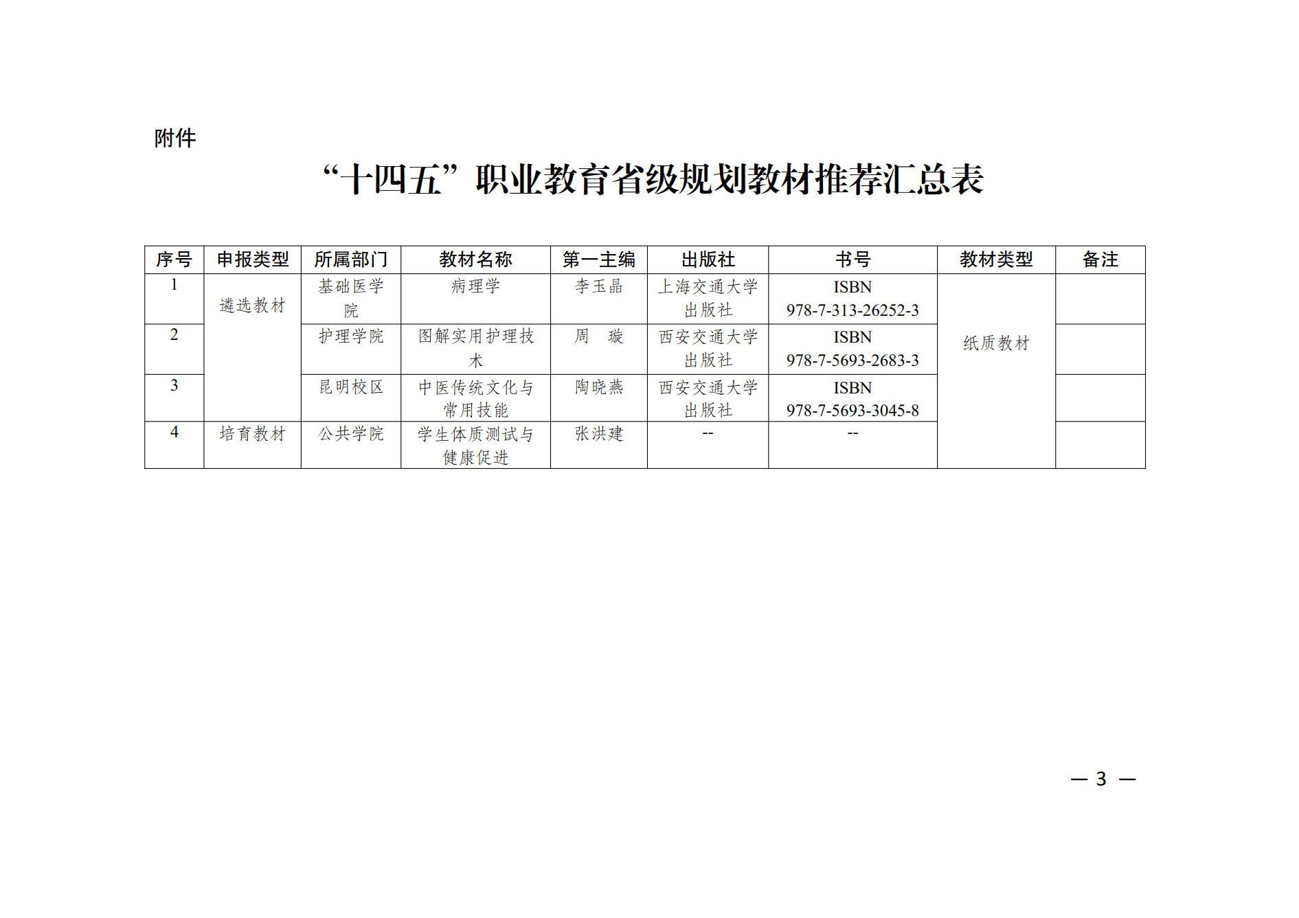 关于推荐申报“十四五”职业教育省级规划教材的公示