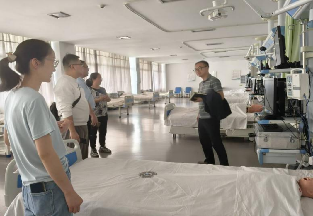 实训中心桂腾瑞老师陪同马旭处长一行实地参观了学院生命科学馆、护理学院实验实训室。护理学院李多琼、基础医学院张丹两位老师对各实训室做了详细的讲解。来访领导对学院的实验实训室建设和实验设备配置给予了高度评价。