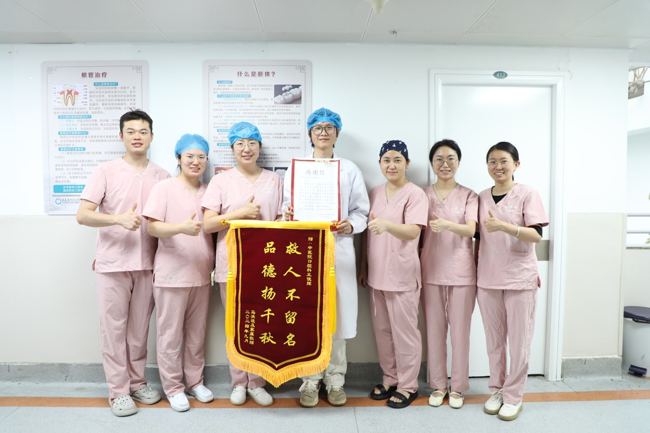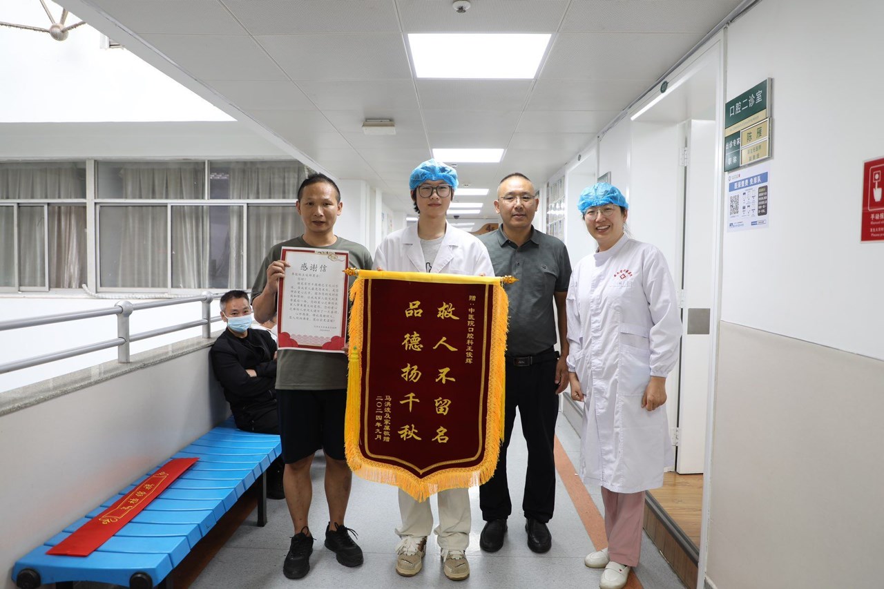 2024年9月10日,患者家属将一面写着“救人不留名,品德扬千秋”的锦旗和感谢信送到云南省中医医院口腔科王俊辉同学手中,表达感激之情。