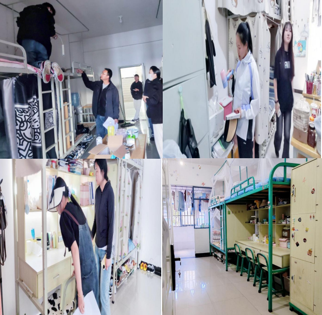 为营造一个安全、整洁、和谐的宿舍环境,推动文明宿舍建设,让学生有一个良好的住宿氛围,在大学生工作部领导下,中医学院学管系列组织中医学院学管办及全体辅导员,于2024年10月17日开展了全面的宿舍安全检查,本次检查过程中存在的问题有地面不干净、衣物摆放杂乱以及部分学生离开宿舍后窗户紧闭,通风不畅等问题,要求相关宿舍进行整改,经与辅导员、宿管进行反映和沟通,共同督促学生认真整改宿舍,并提醒学生合理安排时间,养成良好的生活习惯,做好个人卫生和宿舍清洁工作,定期加强宿舍卫生、宿舍安全相关的宣传教育,提高学生的卫生意识、安全意识,使宿舍卫生安全教育潜移默化。此次安全大检查,旨在加强学生安全意识,规范宿舍管理,及时发现并消除安全隐患,中医学院学管系列将继续加强宿舍卫生安全检查工作,将安全卫生状况落实到位。