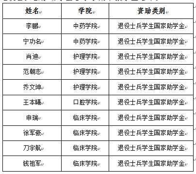 退役士兵国家助学金:根据上级部门有关文件精神,经学生个人申请、二级学院审核、大学生工作部资助中心部复核,现将2024—2025学年春季学期拟资助的退役士兵学生国家助学金评定申报学生名单予以公示。