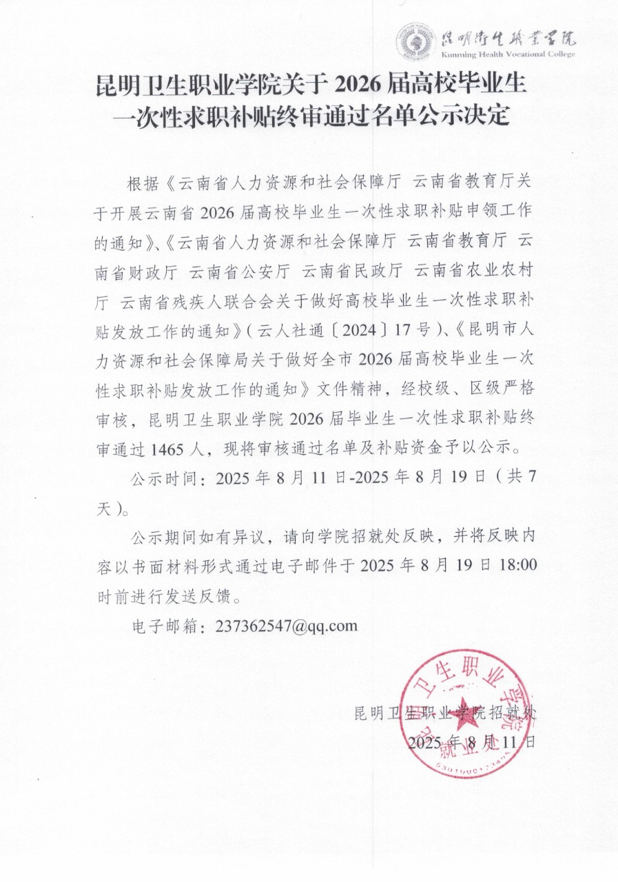 XK星空关于2026届高校毕业生一次性求职补贴终级审核通过名单公示决定