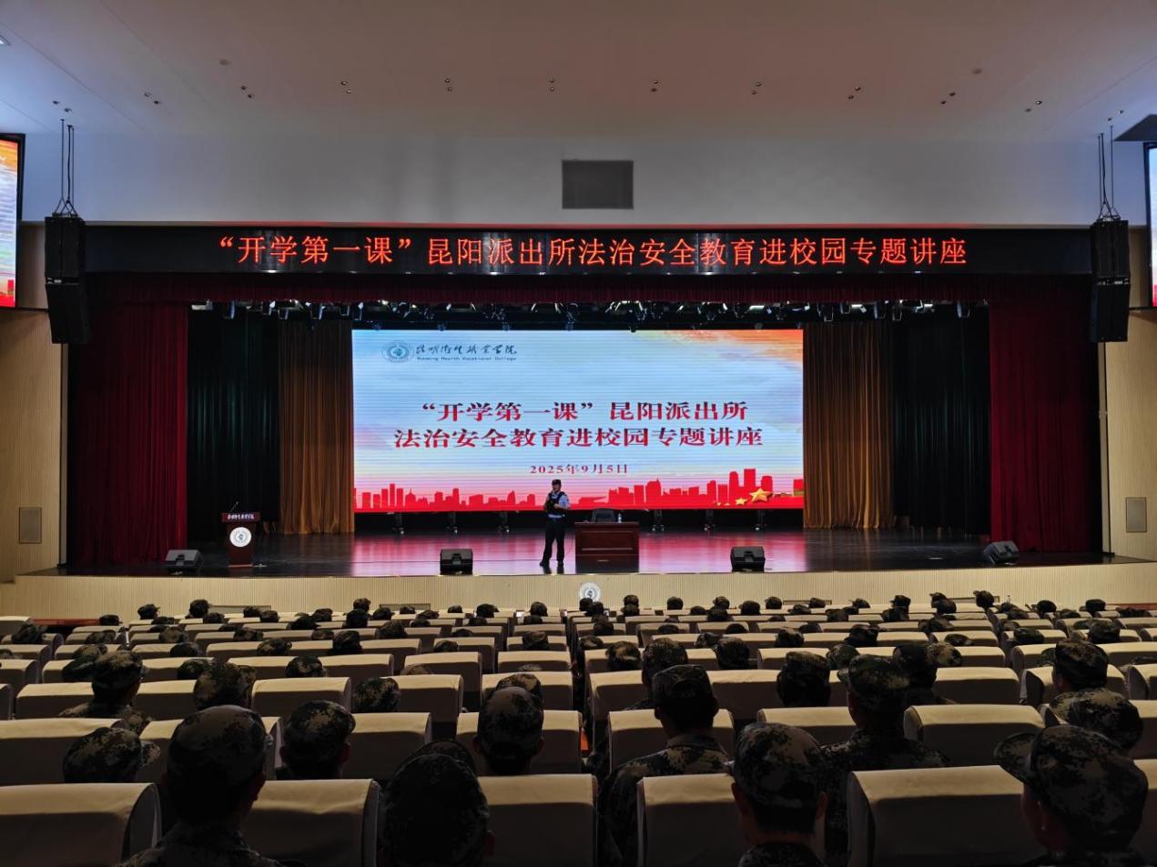 为帮助2025级新生筑牢法治观念、提升安全防范意识,尽快适应大学生活。2025年9月4日-5日,大学生工作部邀请昆阳派出所马云坤所长、驻校民警丁五通进校开展法治安全教育专题讲座。