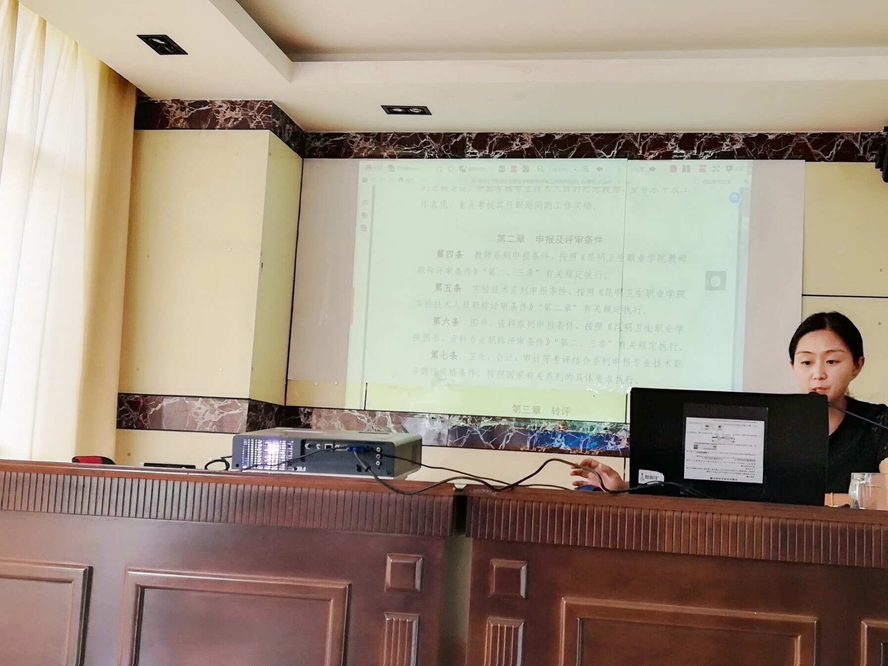 人事处负责职称申报的张正涛老师对职称评审需要准备的材料,申报表的填写、格式等内容做了细致的讲解,确保申报人信息和材料的规范准确、整齐有序。