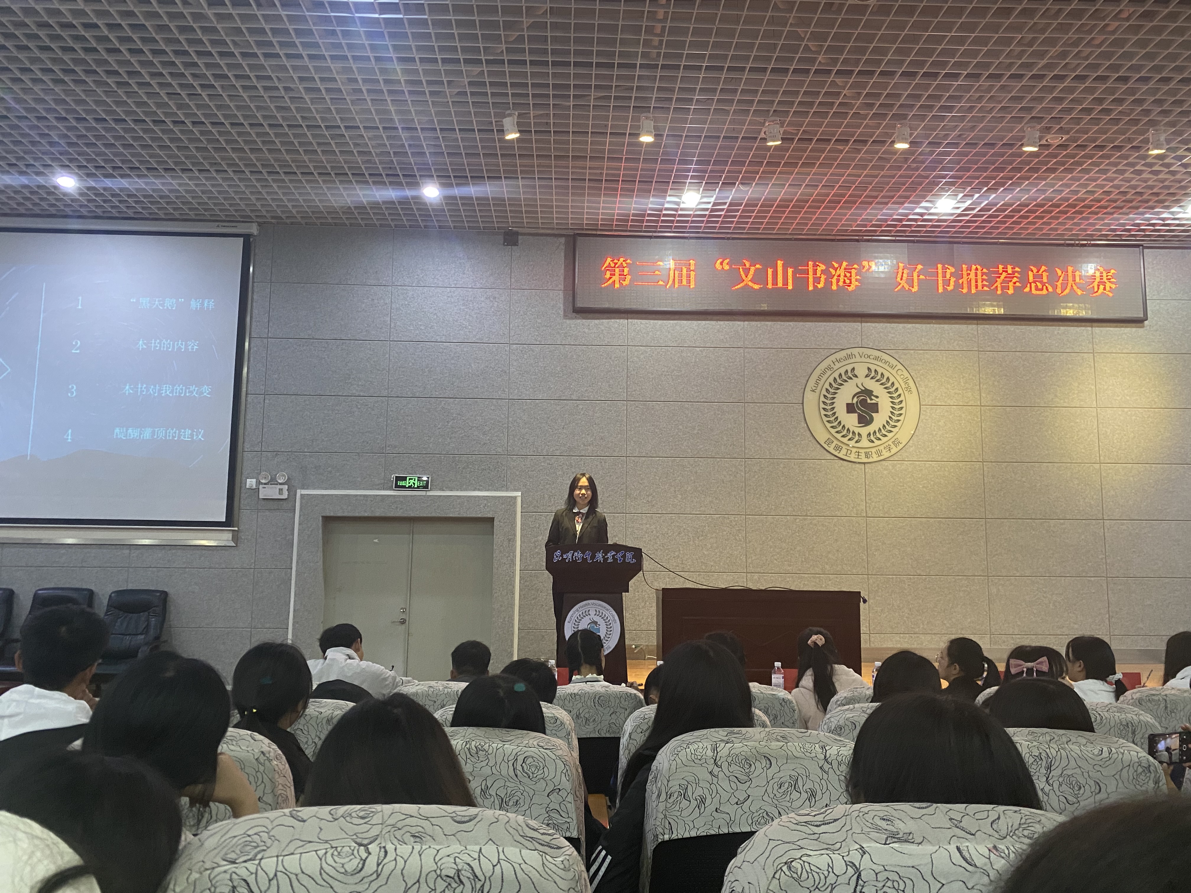 图书馆联合读者协会举办的第三届“文山书海”好书推荐活动决赛,于2020年11月27日14:00-17:00在学术报告厅举行,随着图书馆高丽老师的致辞,此次决赛正式拉开帷幕。