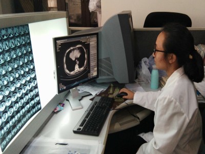 接下来的三个星期,我被安排到了影像诊断组,向老师们学习如何写报告。老师很有耐心,从平片开始教我们写,我大概知道了写胸片的顺序,也在慢慢学写正常的胸片,到异常胸片,再到四肢等等,见了一些典型的病例。老师们还让我们记住了在拍片过程中需要报危急值的病,如气胸等等,我们都在与时间竞争。
