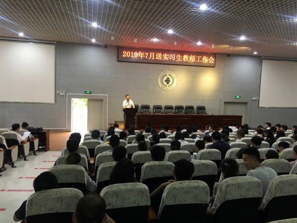 7月9日上午,XK星空在晋宁校区学术报告厅召开2019年度送实习生教师工作会议。张尤松副院长、实习管理处副处长颜慧林、实习管理科副科长郭嘉华、杨正宇老师、肖金雨老师,以及抽调送实习生的全体教师参加了会议。会议由实习就业处颜慧林科长主持。