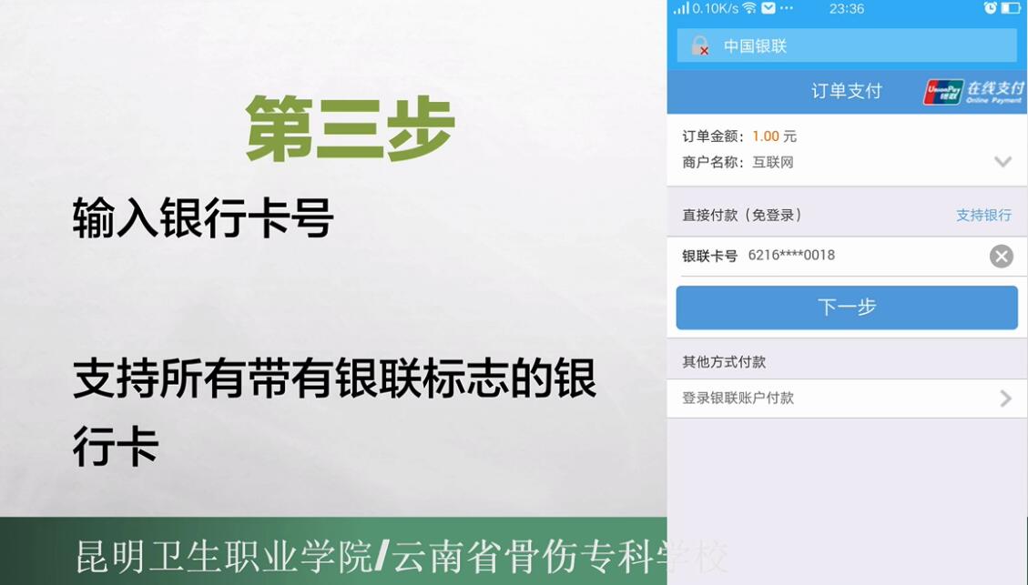 1、确保你缴费使用的银行卡是银联卡(带有银联标志)