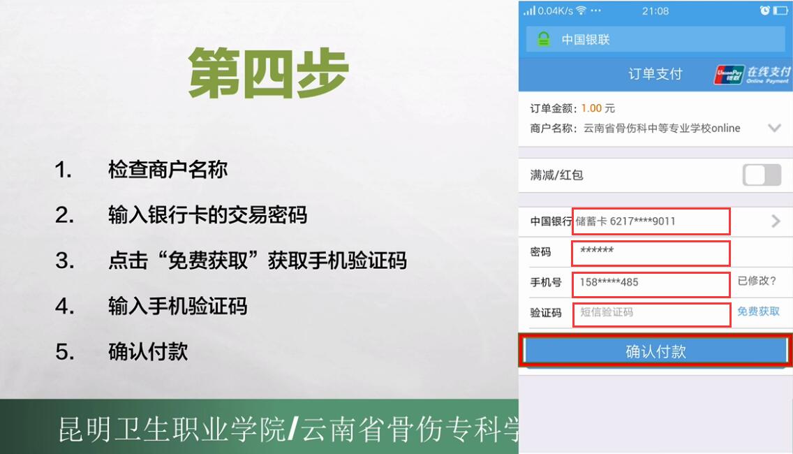 3、缴费使用银行卡需绑定你知道的手机号(最好是本人手机号),以免缴费时手机无法收到银行卡的确认验证码。