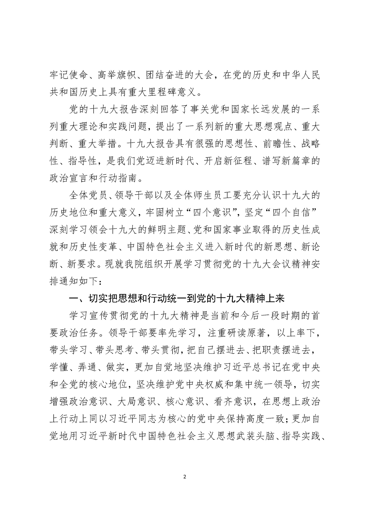 关于在全院组织开展学习贯彻党的十九大会议精神的通知