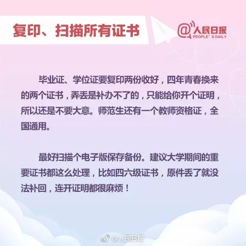 就业创业管理部温馨提示!2018毕业季已经进入倒计时,各种证件发放、手续办理一起涌来,常常让人一头雾水!即将离开校园,最后一步你还需做好这些事:①各种证书复印、扫描;②妥善安置档案,千万别弃档;③及时领取保管好报到证;④处理好党组织关系转移……以下手续千万记住↓↓↓