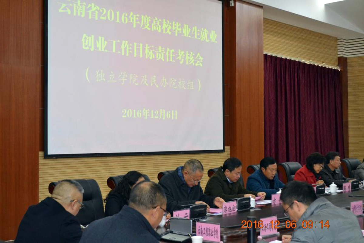 12月6日,XK星空由实习就业部部长张尤松,副部长颜慧林带队,一行四人在云南经济管理学院安宁校区,参加了“云南省2016年度高校毕业生就业创业工作目标责任考核会”。省内各独立学院及民办院校分管领导,对本年度就业创业工作依次进行了汇报。
