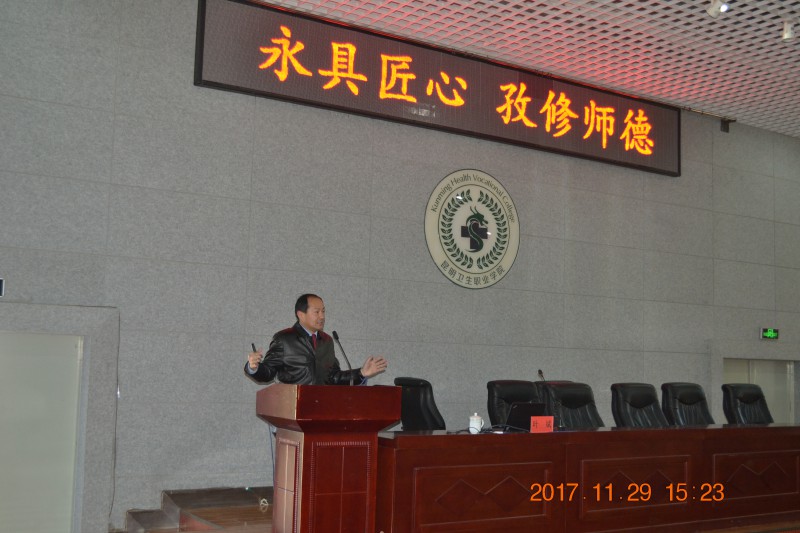 11月29日,云南省圣约翰康复医院院长叶斌一行,到XK星空进行参观访问,校实习管理部接待了来访客人,并对双方今后的合作达成协议。下午,叶斌教授在学术报告厅为XK星空学生做了一场题为“永具匠心,孜修师德”的讲座。