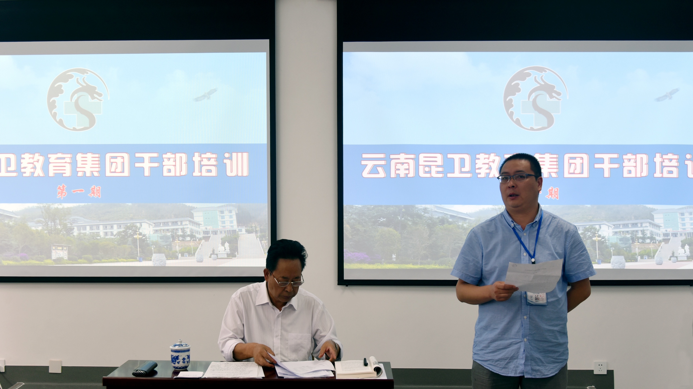 9月14日下午,云南昆卫教育集团干部培训班开班典礼暨第一期培训在XK星空继续教育学院408正式开班。集团各单位正处级以上领导,XK星空二级学院院长、副院长共计55人出席开班仪式。
