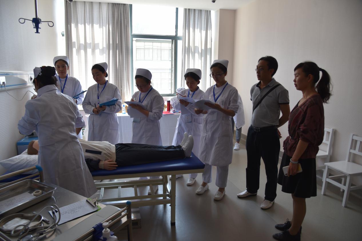 本次竞赛设置有临床护理右踝关节包扎、心肺复苏、密闭式静脉输液、置胃管;临床医生心肺复苏技术、肝脏触诊技术、胸膜腔穿刺术、上腹部手术切口换药技术等项目,各参赛选手沉着应对,认真投入按竞赛流程展示医护技艺,比赛场地组委会各小组严格按竞赛方案开展医疗器械和药物准备、评分、统分、视频监控、巡考等工作,一派热火朝天的场面,晋宁区总工会副主席黄丽江等领导赴考场检查指导,确保竞赛有序推进。