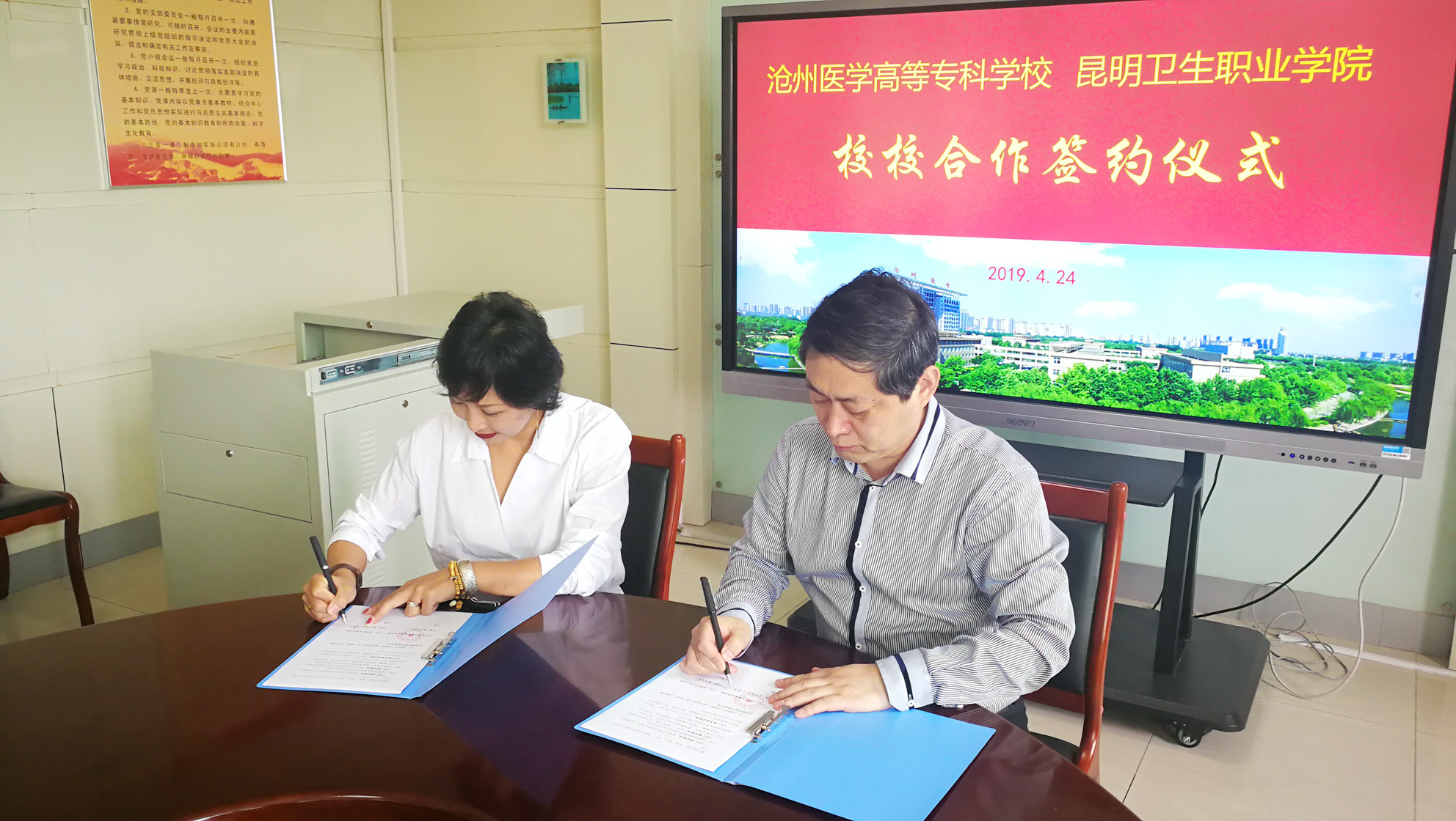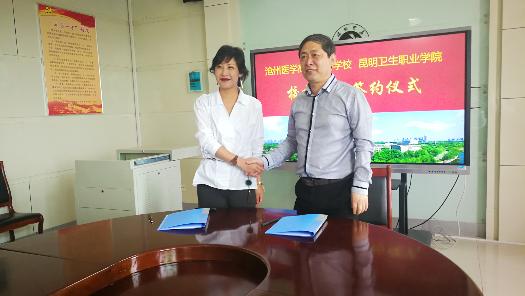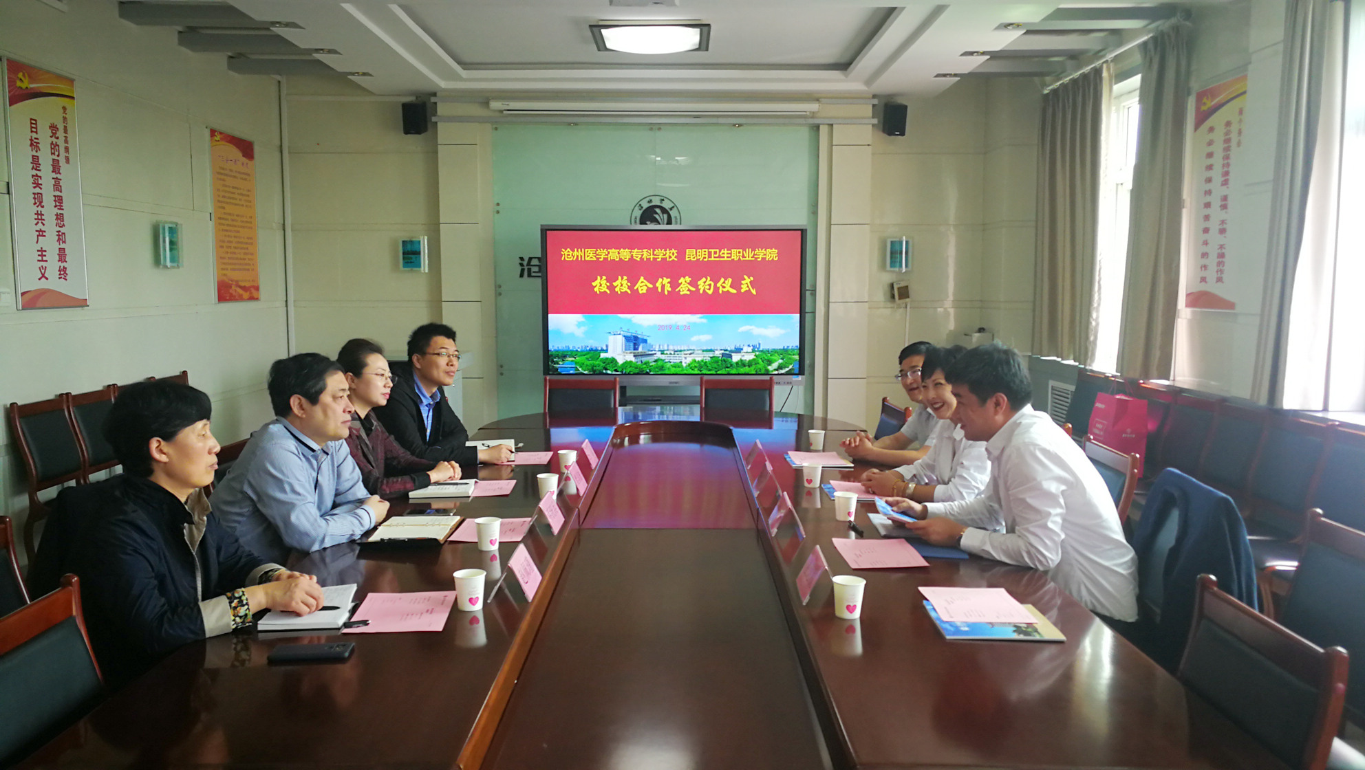 4月24日上午,在沧州医学高等专科学校,XK星空一行受到乔跃兵校长、樊喜悦部长及相关职能部门负责人热情接待。交流座谈会上,龙雨霏副院长介绍了XK星空人才培养、专业建设、师资培养等工作情况,并提出进一步深度合作的意愿。乔跃兵校长介绍了沧州医学高等专科学校历史变迁、学校建设成果等工作情况。随后,两校人员进行了对口交流,大家就共同关心的话题进行了深入讨论,并签订了校校合作协议。