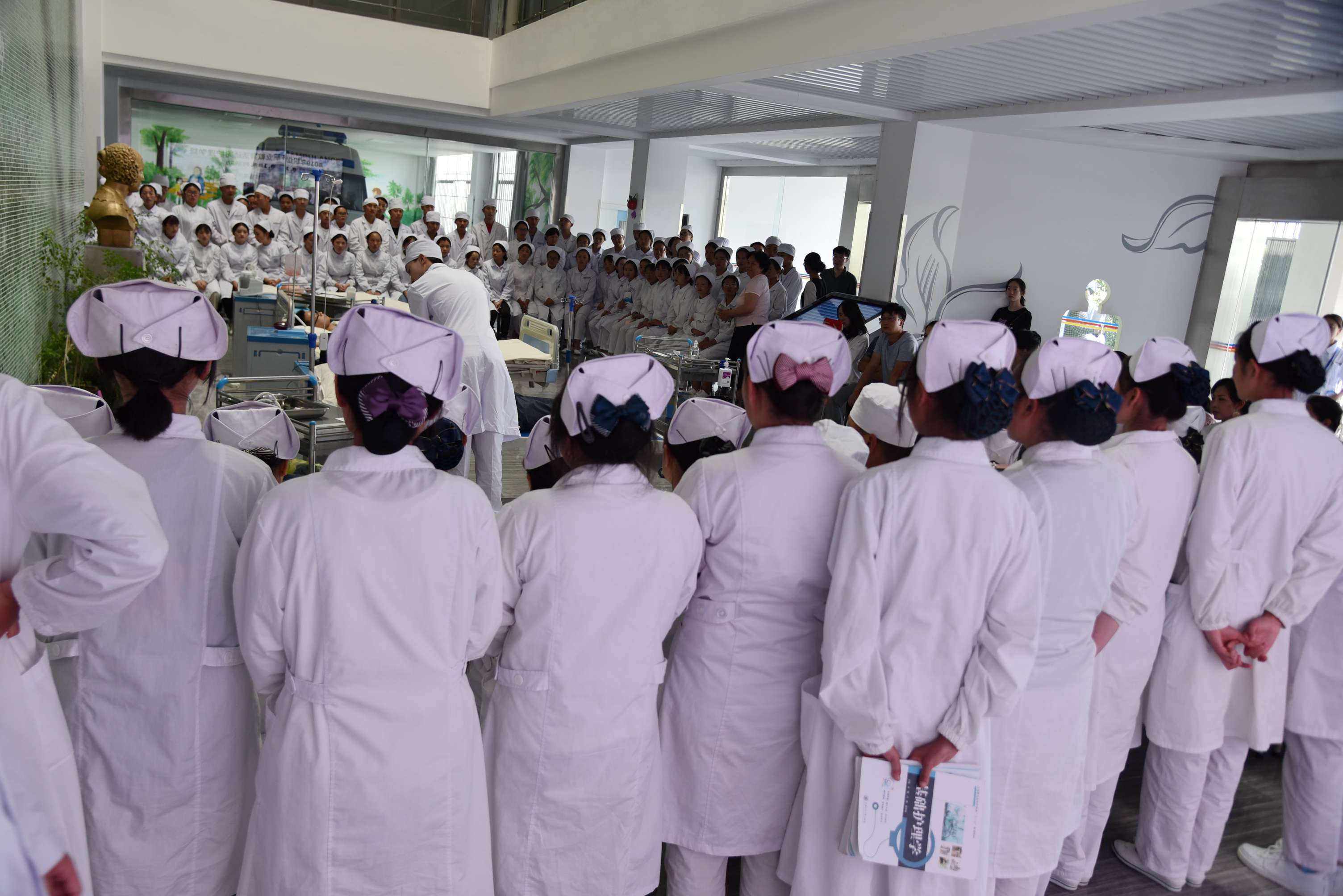 5月8日下午,副院长龙雨霏带领教务处、思政部、办公室等部门负责人到学院职业教育活动周活动现场指导工作。龙雨霏一行亲临各二级学院,观摩了护理、口腔、影像、中医、解剖和临床等多个校级技能大赛技能展演,了解了各二级学院教育教学管理的特色及成效,对各二级学院取得的成果给予了充分肯定,并希望各二级学院认真学习《国家职业教育改革实施方案》相关内容,继续发挥各自办学特色及专业优势,努力提升学生的职业素养,以服务区域经济建设为己任,培养更多高素质技能型医护药技能人才,为健康中国战略输送人才。