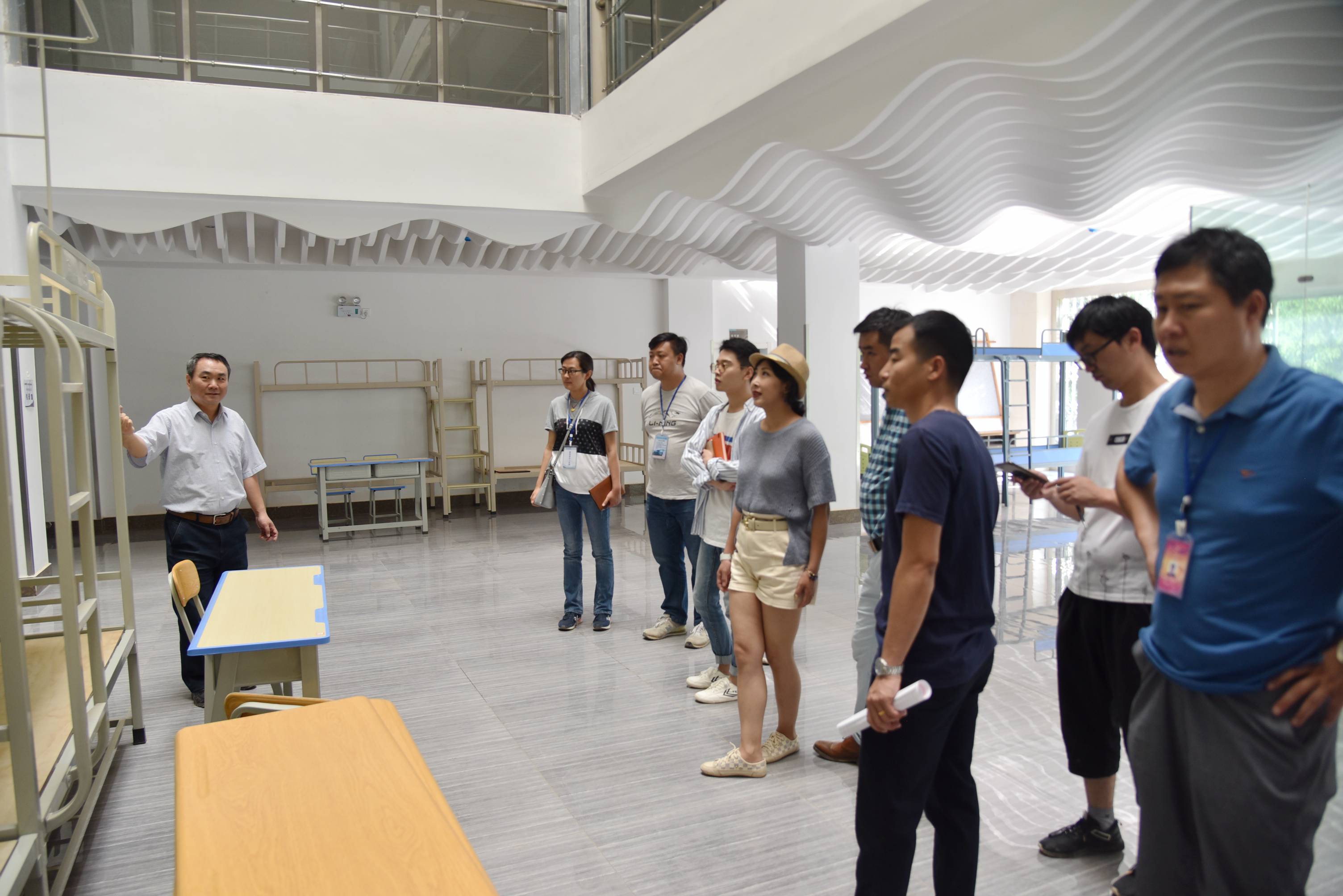 会后,院长贾勇,党委副书记张晓刚,副院长周平、龙雨霏、张磊等学院领导,带领学院办公室、教务处、大学生工作部等部门前往继续教育学院,实地察看了新增教室配备情况和新增学生宿舍配套床铺选用情况。
