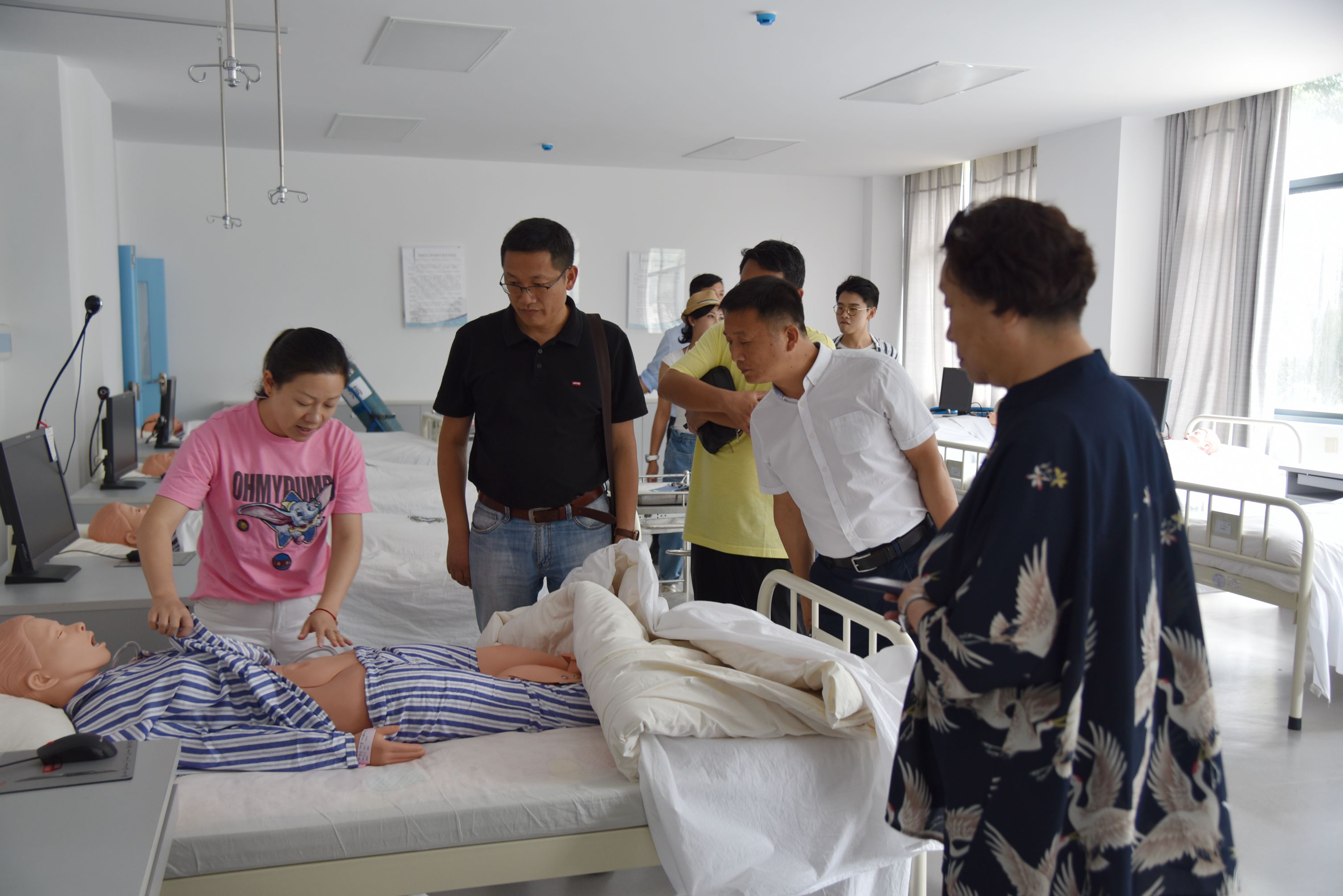 调研组一行实地参观了护理学院实验实训设备,听取了实训室整体布局及设施设备的使用情况介绍,了解XK星空办学理念,素质教育实施情况,与教务处、护理学院负责人进行了交流。