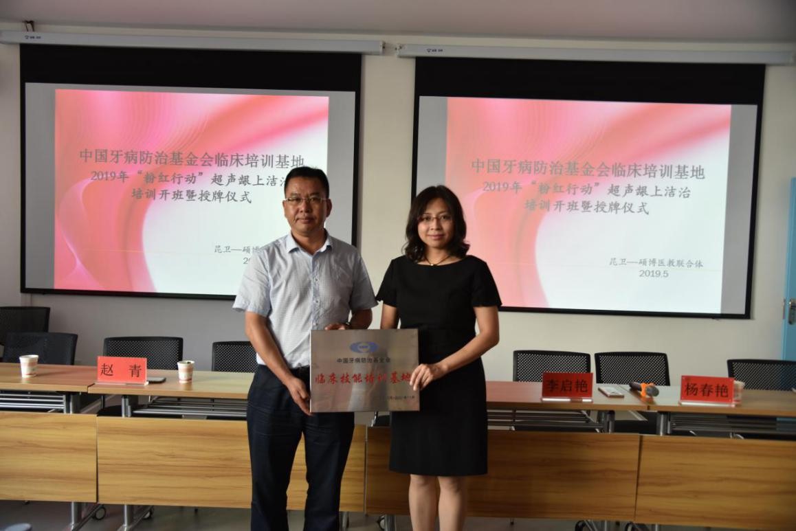 在开班仪式上,曾东博士代表中国牙防基金会发言,介绍了中国牙防基金会的宗旨和开展粉红行动的意义,并对本次培训提出了要求和指导,为XK星空口腔临床培训基地授牌,并为两位志愿者讲师和上海品瑞医疗器械设备有限公司颁发感谢状。