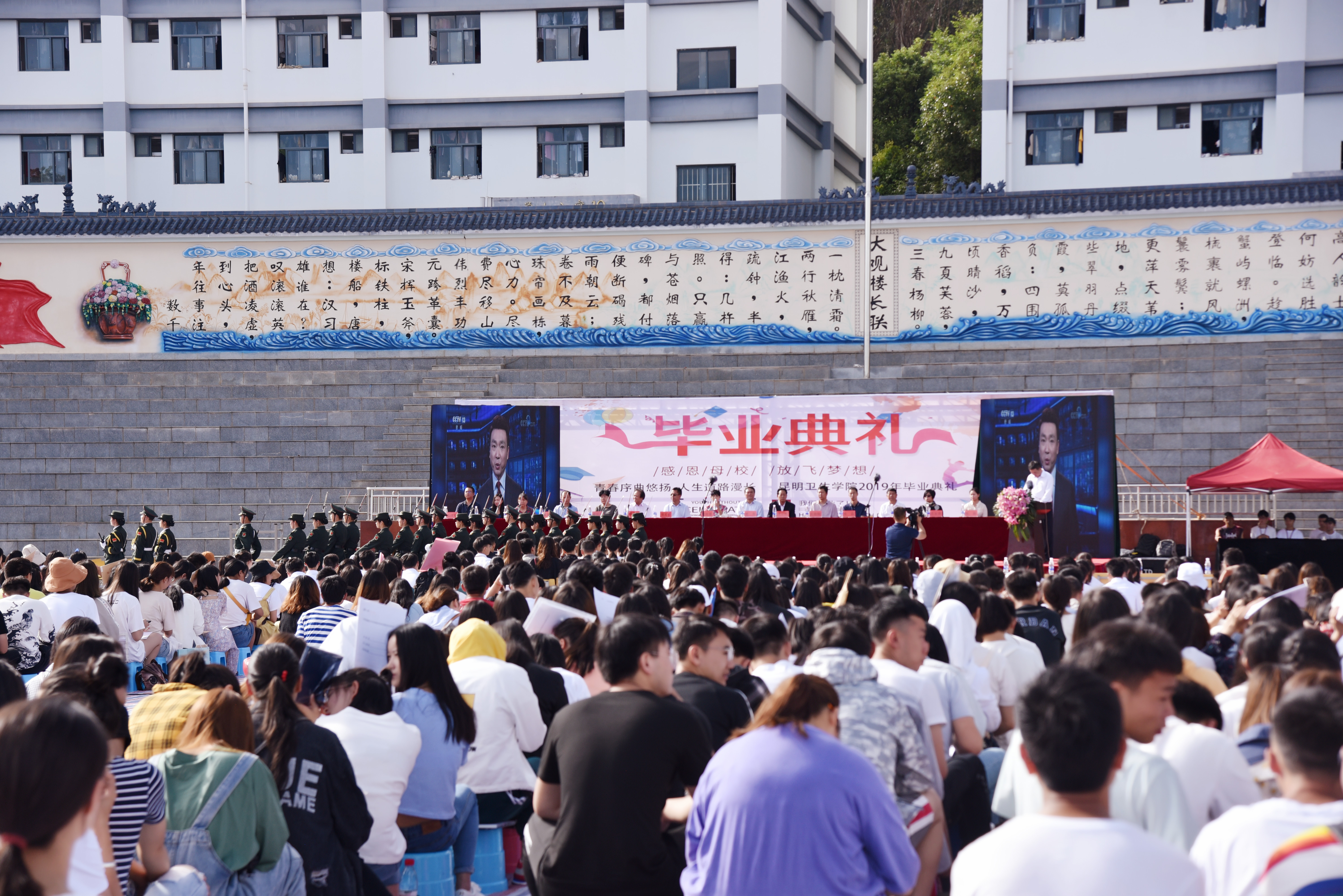 栀子花香弥漫的六月,毕业的骊歌再次唱响。6月12日,XK星空2019届毕业生毕业典礼在足球场举行。学院2730名毕业生即将踏上新的征程,学院党委书记龙正昌,院长贾勇,党委副书记张晓刚,党委委员、副院长周平,副院长龙雨霏、张磊、张尤松等学院领导,以及各部门负责人、二级学院院长、2019届毕业班辅导员及毕业生家长代表共同见证了毕业生们这一重要的人生时刻。毕业典礼由周平副院长主持。
