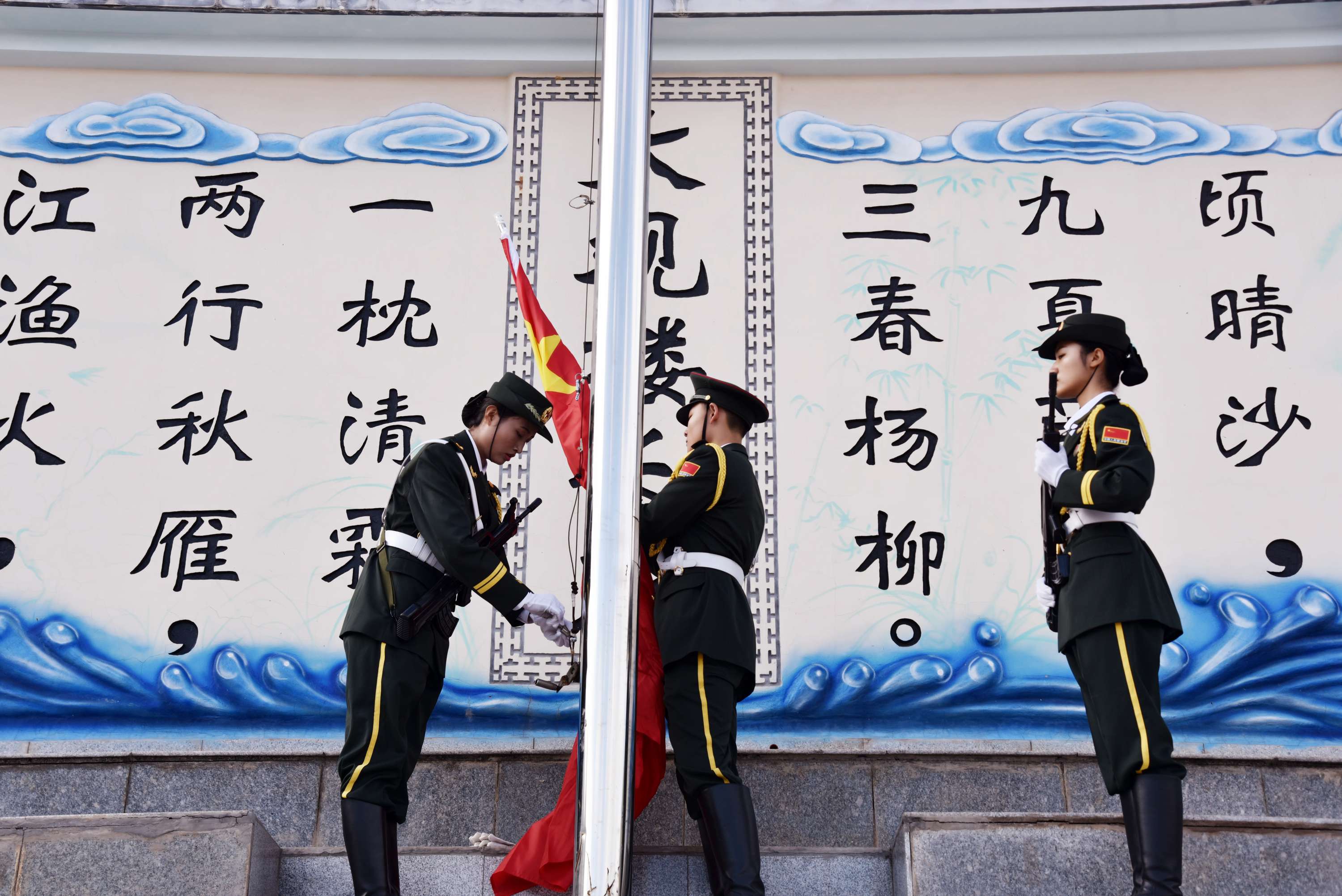 毕业典礼上最美的风景,莫过于国旗护卫队的飒爽英姿。