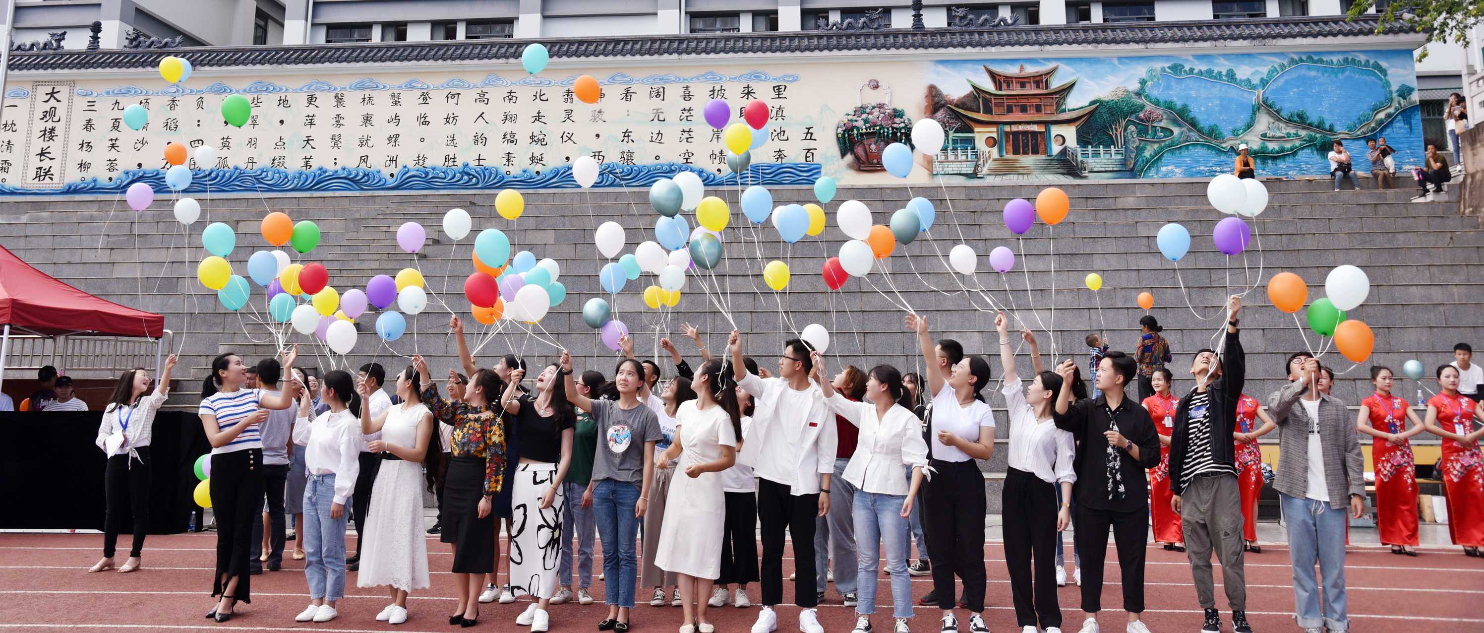 五彩的气球带着毕业生的理想与抱负,飘向无尽的远方。