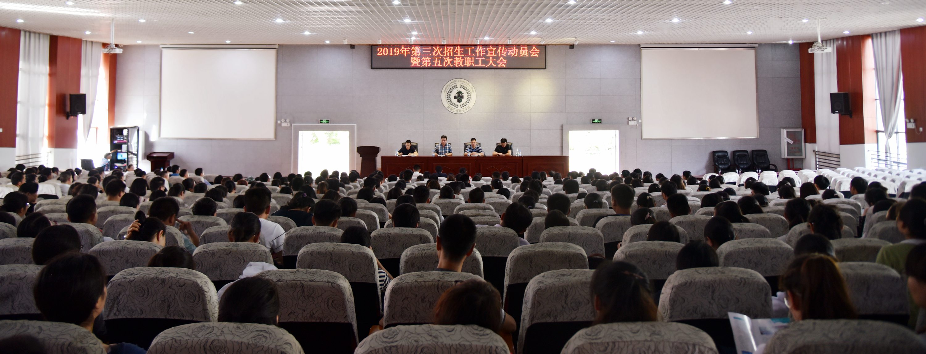 6月19日下午,XK星空在综合楼学术报告厅召开2019年第三次招生宣传工作动员会暨第五次教职工大会。学院党委副书记张晓刚,党委委员、副院长周平,副院长陈举国、张磊出席大会,全体教职工参会,会议由周平副院长主持。