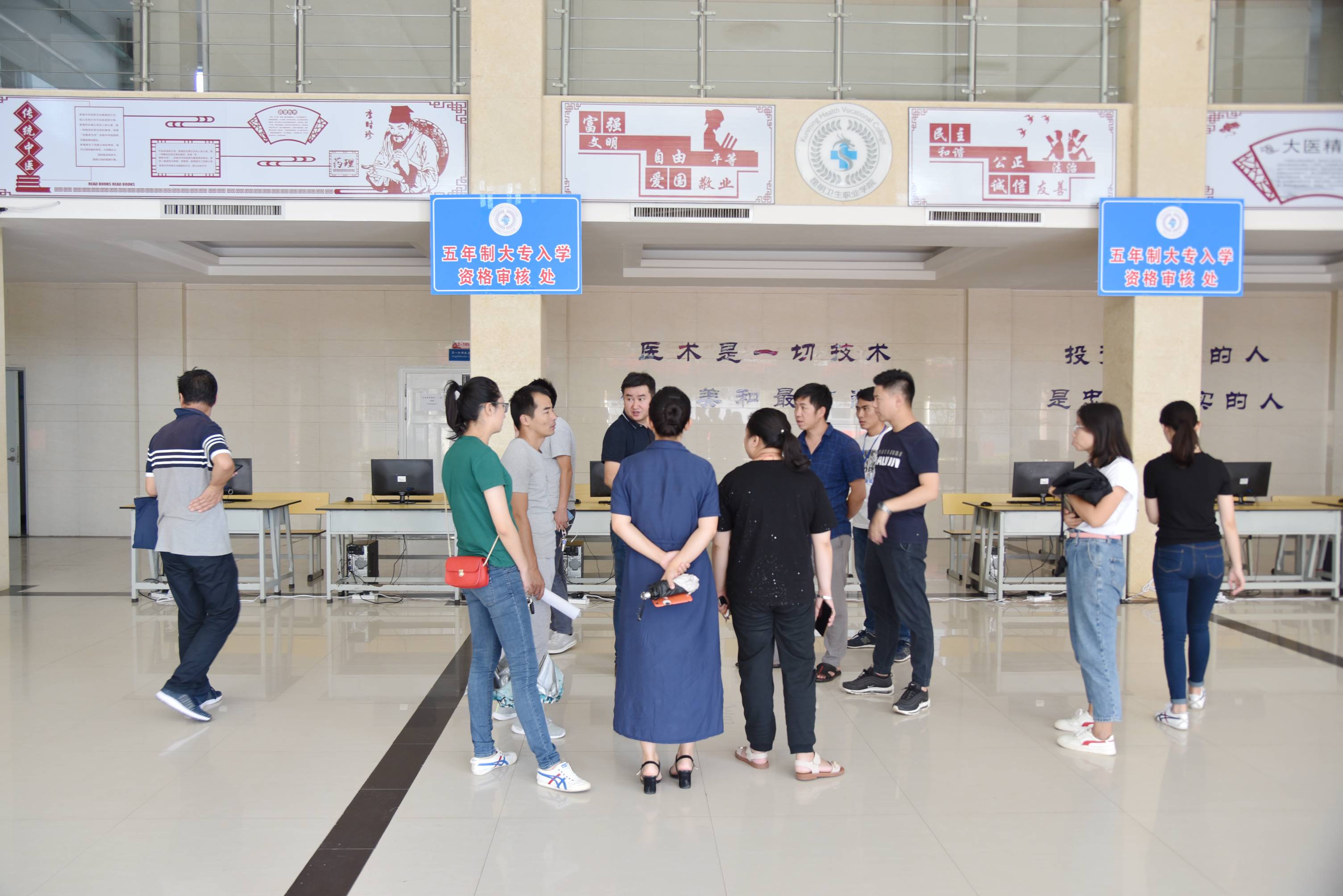 检查组一行先后前往临床学院、护理学院、口腔、检验、影像、药学等二级学院接待点,对新生接待服务、助贷咨询、辅导员接待、分班、新生心理咨询、一卡通办理缴费等点位设置,网络线路通畅、人员准备等情况实地检查,了解存在的问题,督促各点位负责人加快工作进度。