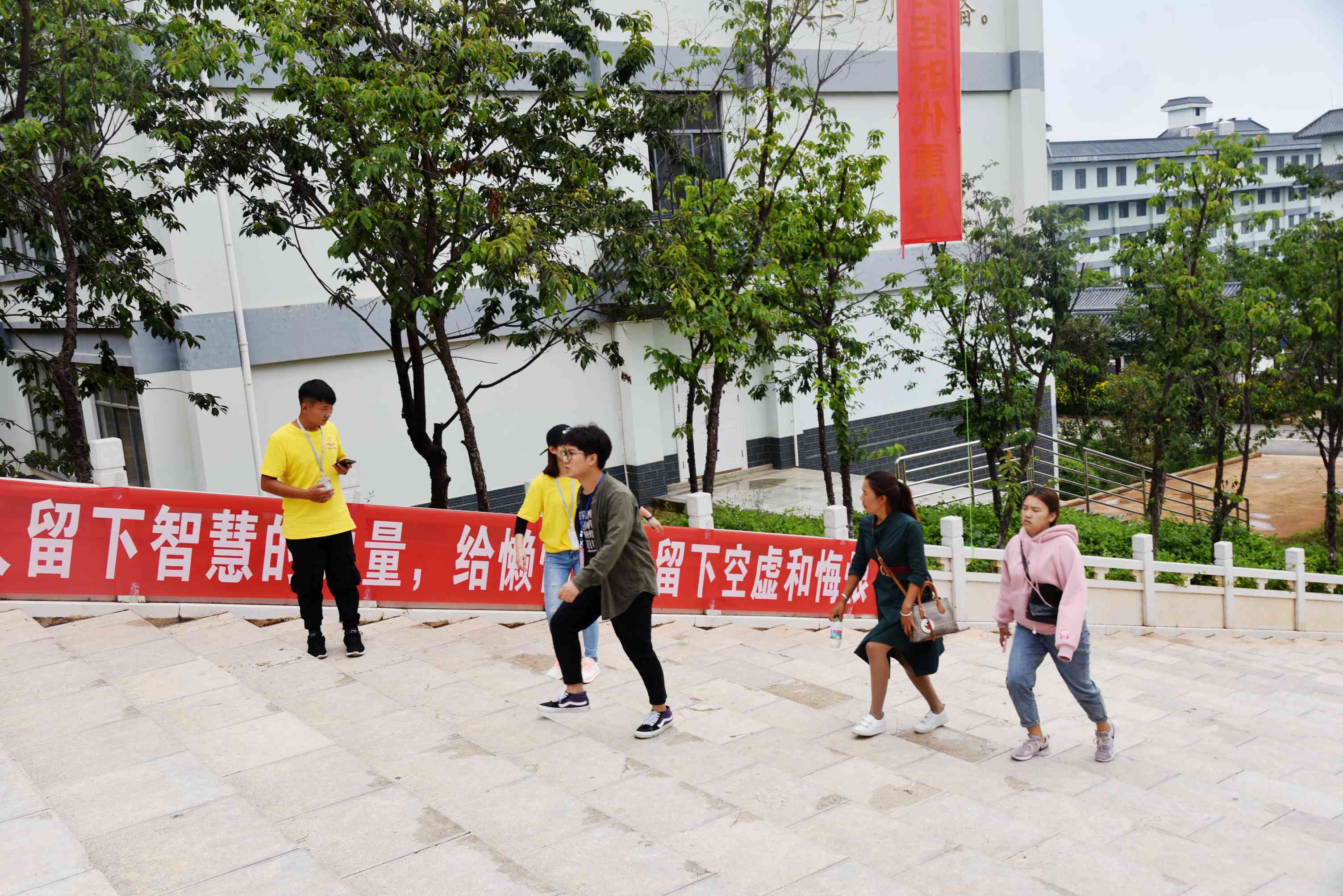 还属夏天的八月中,雨过天青,天色微蒙,全体迎新人员已精神饱满、着装整洁地在图书馆前小广场, 聆听周平副院长对迎新工作的指示。周副院长强调,各迎新组和迎新站点要认真按照学院统一部署,以育人为落脚点做好管理和服务工作,细化迎新工作中的各个环节,强化服务意识,树立良好的学院形象,注重新生入校的体验感受,做好流程和细节的梳理,方便新生报到手续的顺利办理,让学生满意、让家长放心。