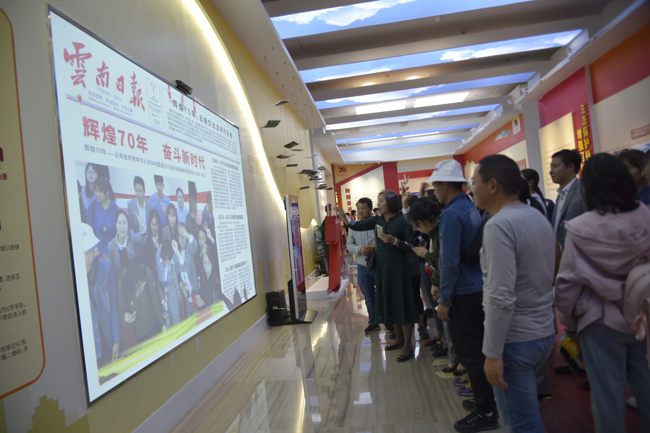 XK星空教师党员还体验了以“辉煌70年•奋进新时代”为主题的“我要上头条”AR拍照,并在“祝福我的祖国”留言墙上留下对祖国的诚挚祝福。听历史的回响,看时光中的云南,参观党员教师由衷为云南经济社会跨越式的发展感到欣喜和骄傲。