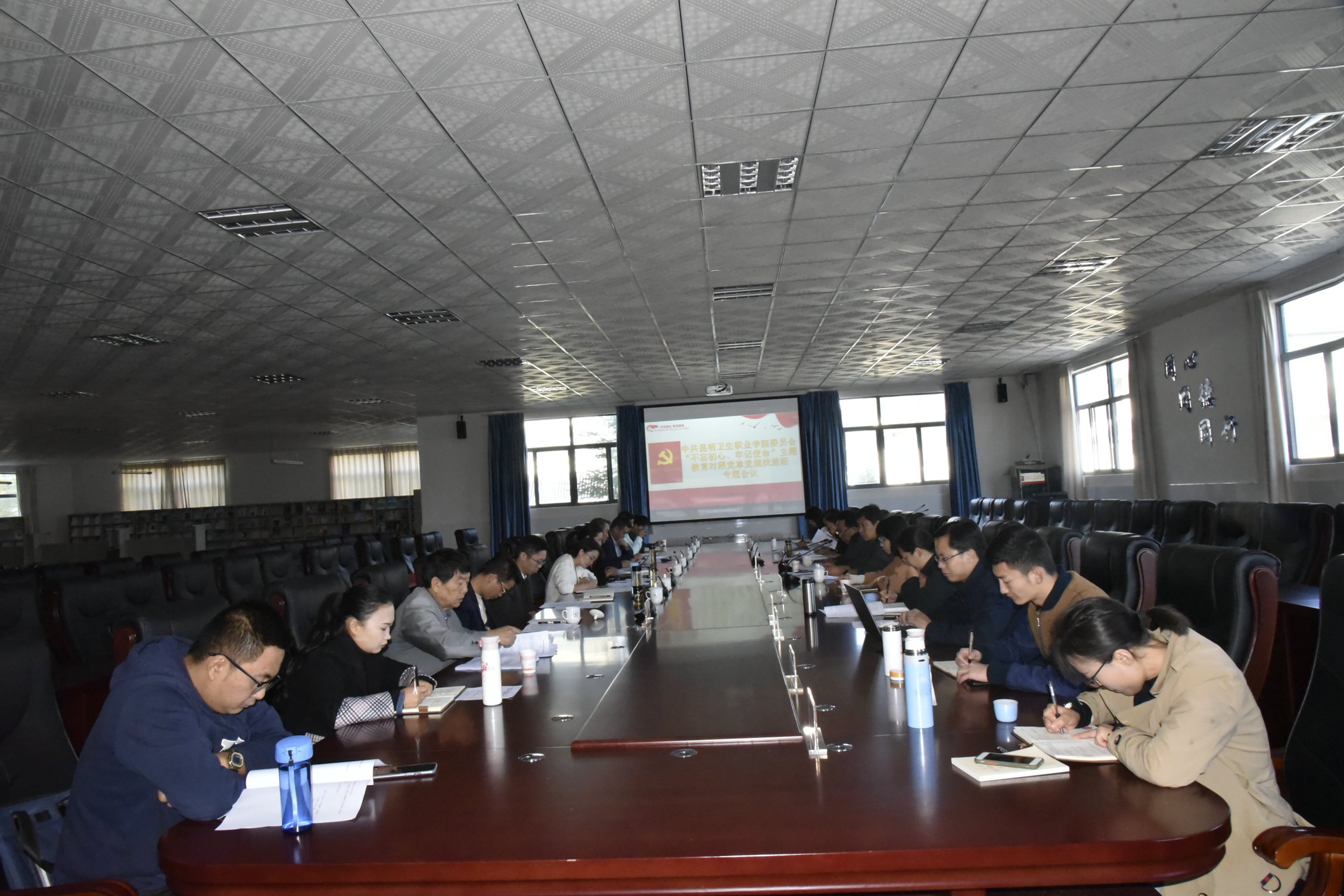 10月30日10:30,XK星空党委在图书馆二楼会议室召开了“不忘初心、牢记使命”主题教育领导班子对照党章党规找差距专题会。学院党委书记龙正昌,学院领导班子及党委委员参加了大会。省委高校工委、省教育厅“不忘初心、牢记使命”主题教育民办院校第一指导组组长杨丽、副组长魏岷、成员胡浚娴一行3人到会指导。会议由学院党委副书记张晓刚主持。
