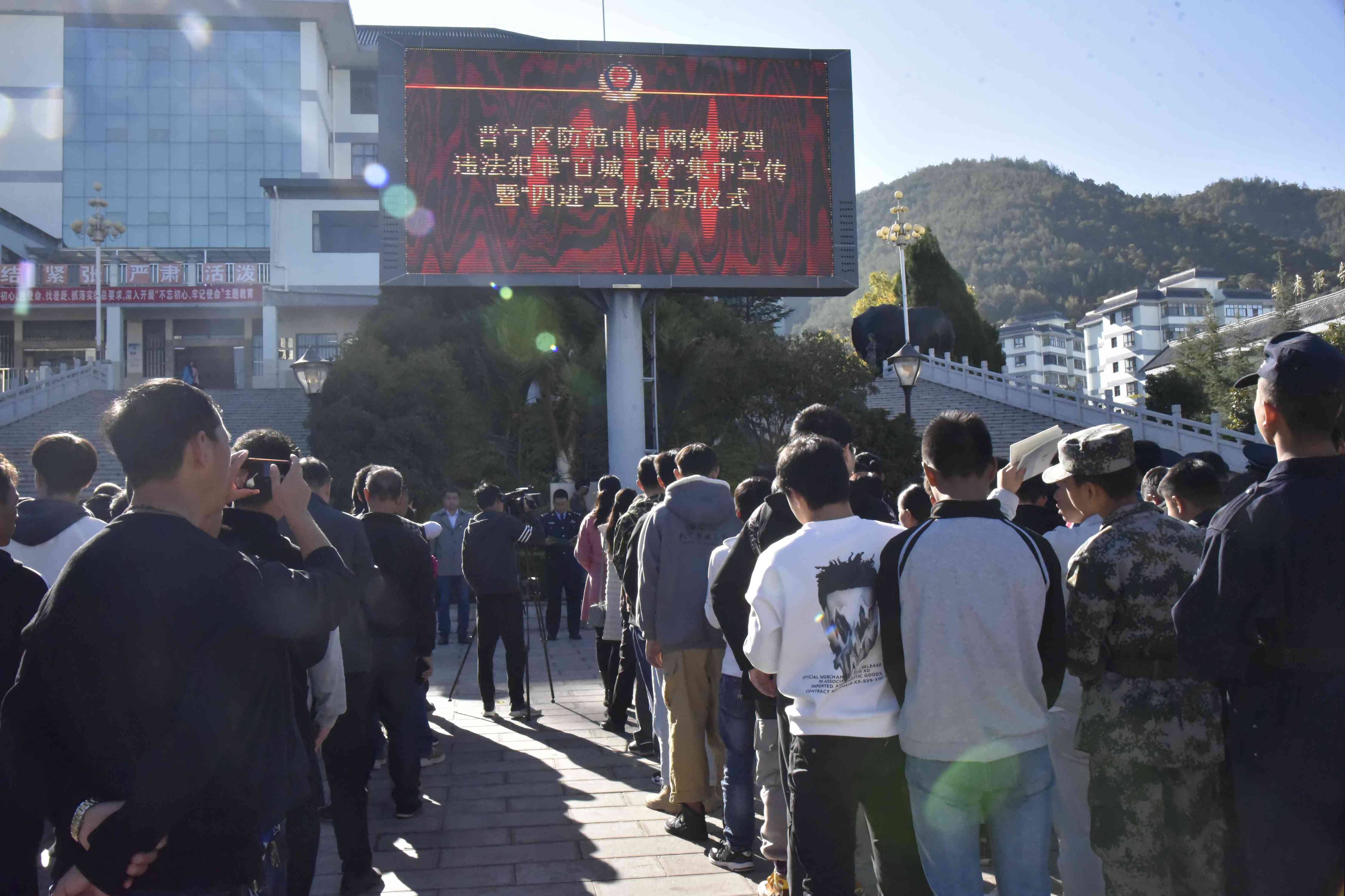 11月29日上午,昆明市公安局晋宁分局联合晋宁区各区级相关单位以“防范新型电信网络诈骗安全教育活动”为契机,结合公安部刑事侦查局发的文件相关要求,决定在XK星空电子大屏幕前举行“守护青春“百城千校”防“套路贷”防电信网诈骗宣传活动启动仪式。