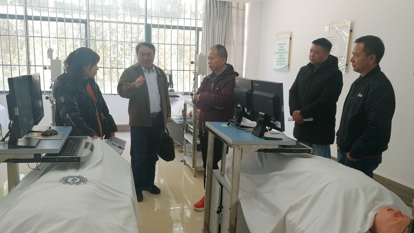2020年1月17日,云南省教育厅校院合作处处长朱金陵、云南交通职业技术学院院长杨金华、人事处处长安四明一行到XK星空就“同济中德项目”开展情况进行调研与指导。云南昆卫教育集团副理事长朱秀珍、XK星空院长贾勇、教学副院长龙雨霏、教务处副处长王思权、护理学院副院长周璇参与调研交流活动。