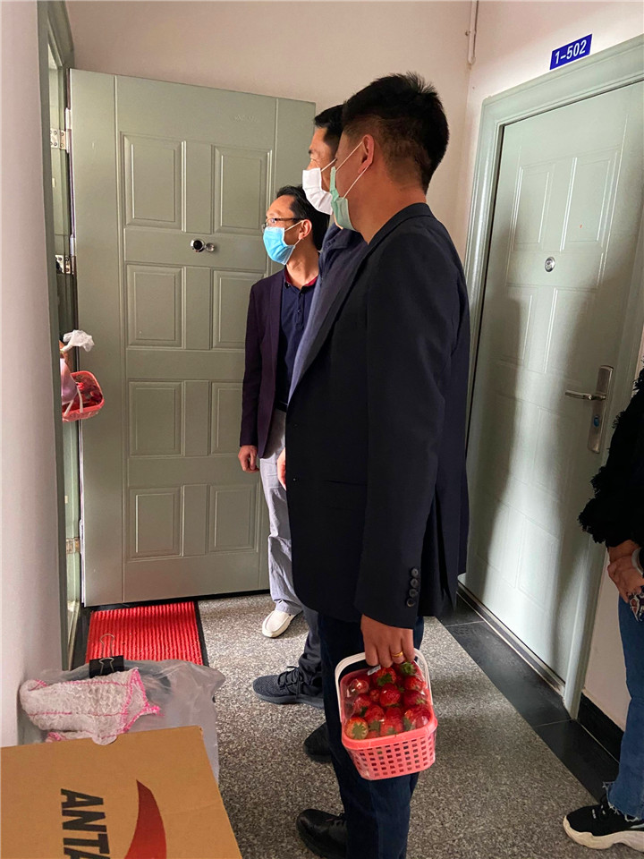 3月24日,学院工会主席张磊、副主席虎志辉带领工会委员慰问了学院省外返岗21位居家隔离教职工和坚守学院抗疫情岗位的一线职工。