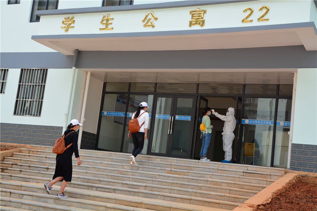 学生公寓实行封闭管理,取消访客制度,谢绝外人来访。公寓楼内设定专门的引导员、测温员、消毒员等,确保学生安全有序返回公寓。进入公寓前,学生需列队间隔一米以上。