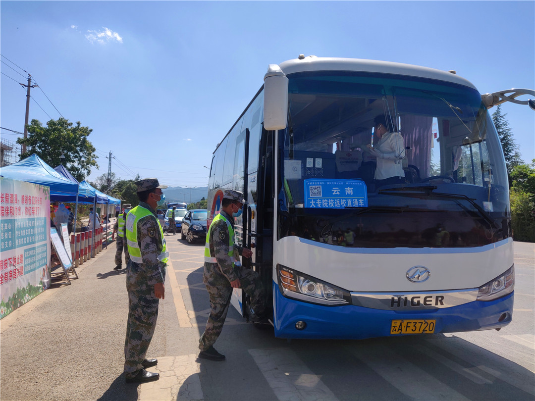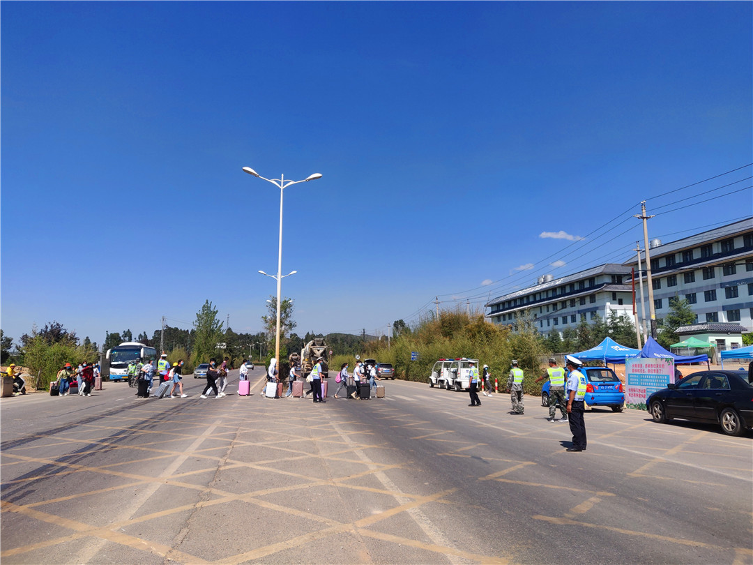紧张有序的返校背后,离不开全院上下的努力付出和辛勤劳动,也离不开晋宁区委区政府的大力支持。区交通、公安、特警等多部门的工作人员与学院教职工共同执守,形成联防联控强大合力,确保了学生安全顺利返校。