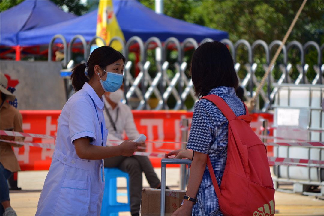 5月10日,XK星空迎来了第一批学生返校。赤日炎炎,恰似同学们返校的热情。8:30开始,随着车流、人流的到来,毕业生开始陆续返校。进校前,每人间隔一米自觉接受行李消毒、体温测量、提交两表一码后有序进入校园。