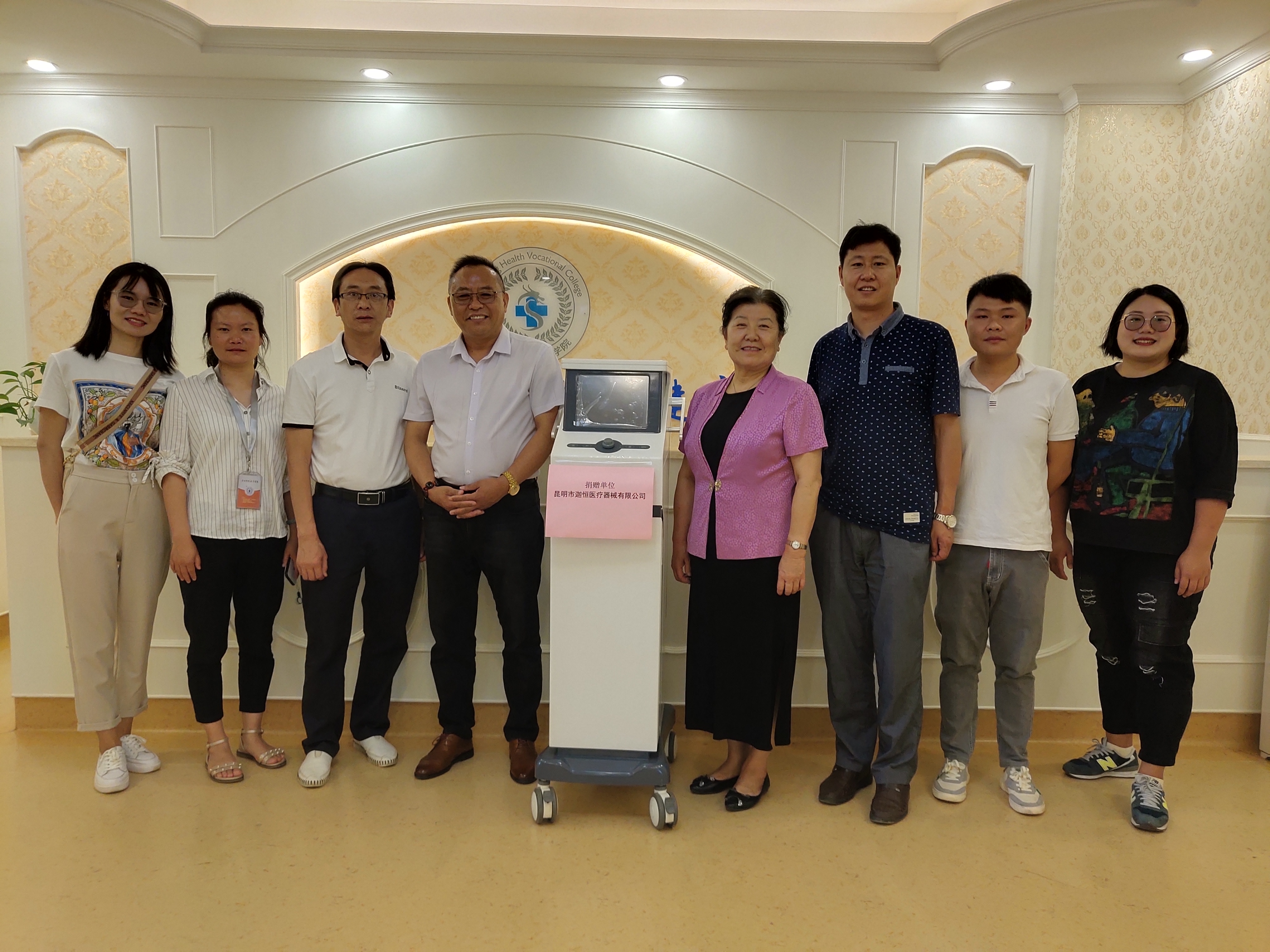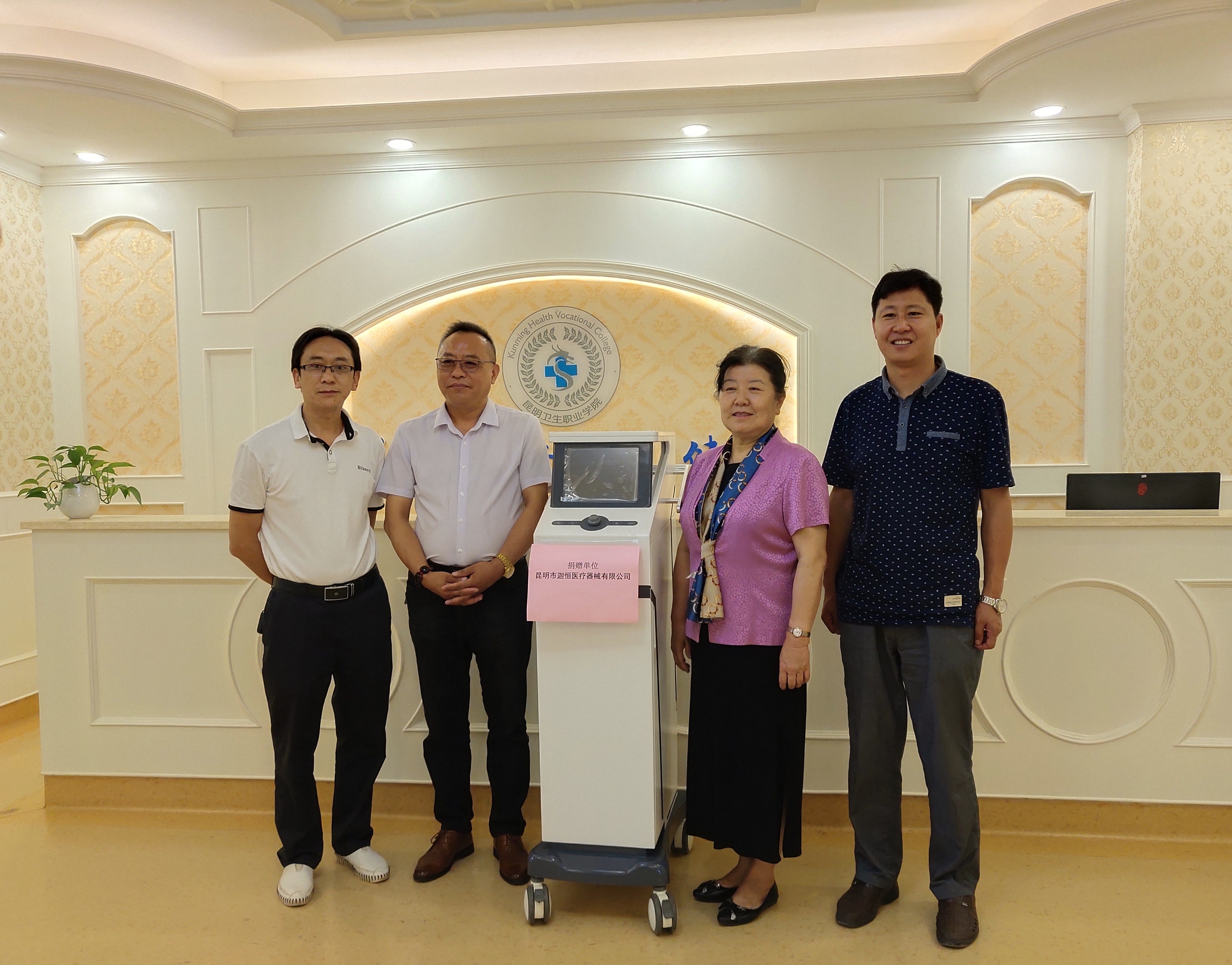 在学校领导的支持下,经口腔学院争取,昆明市迦恒医疗器械有限公司法人张红军总经理,向学校无偿捐赠一台价值8.3万元的口腔舒适化治疗设备(笑气),该设备将用于临床治疗和口腔医学教学示教,使学生认识、了解目前临床普片使用的新型设备和使用方法,同时提升了学校的硬件装备力量。