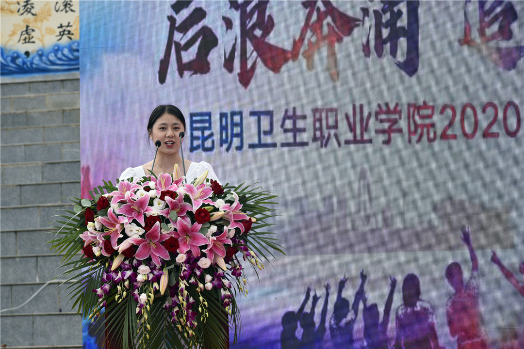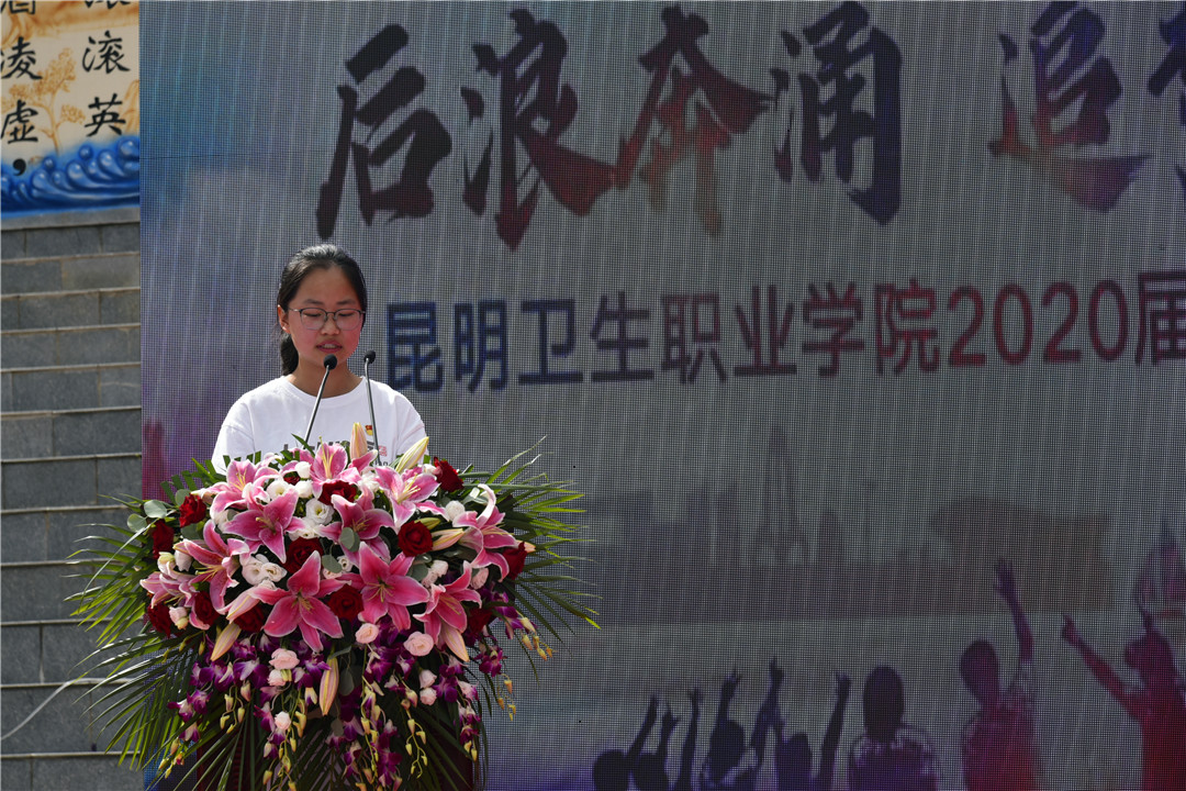 毕业班辅导员代表张桂芬和在校生代表宋梦洁也向2020届毕业生说出了她们的临别赠言:请昂首阔步迈向征程,在你们身后,有最坚不可摧的堡垒——XK星空,愿你们能脚踏实地,也仰望星空;以渺小启程,以远大结束,在未来闪闪发光、熠熠生辉。