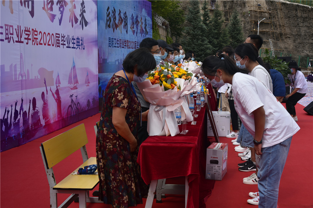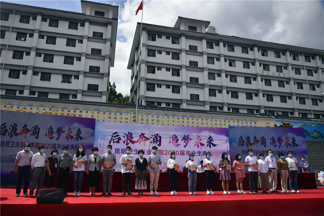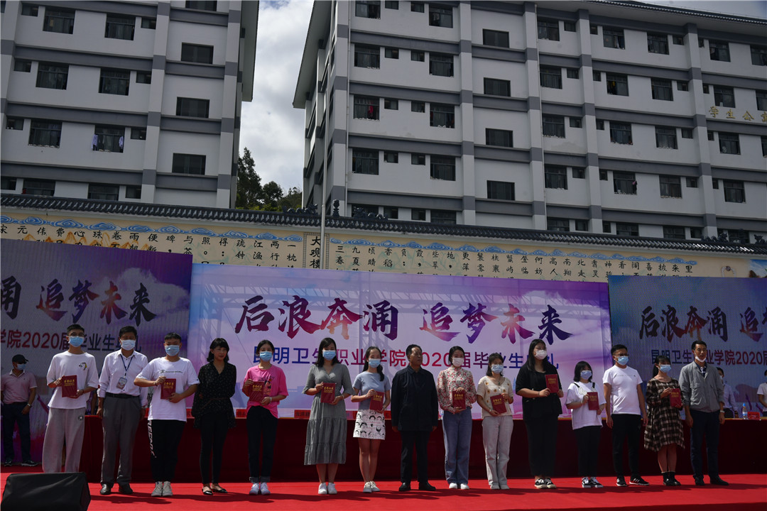 副院长龙雨霏宣读了2020届优秀毕业生、优秀实习生表彰名单。出席毕业典礼的领导为他们颁奖。