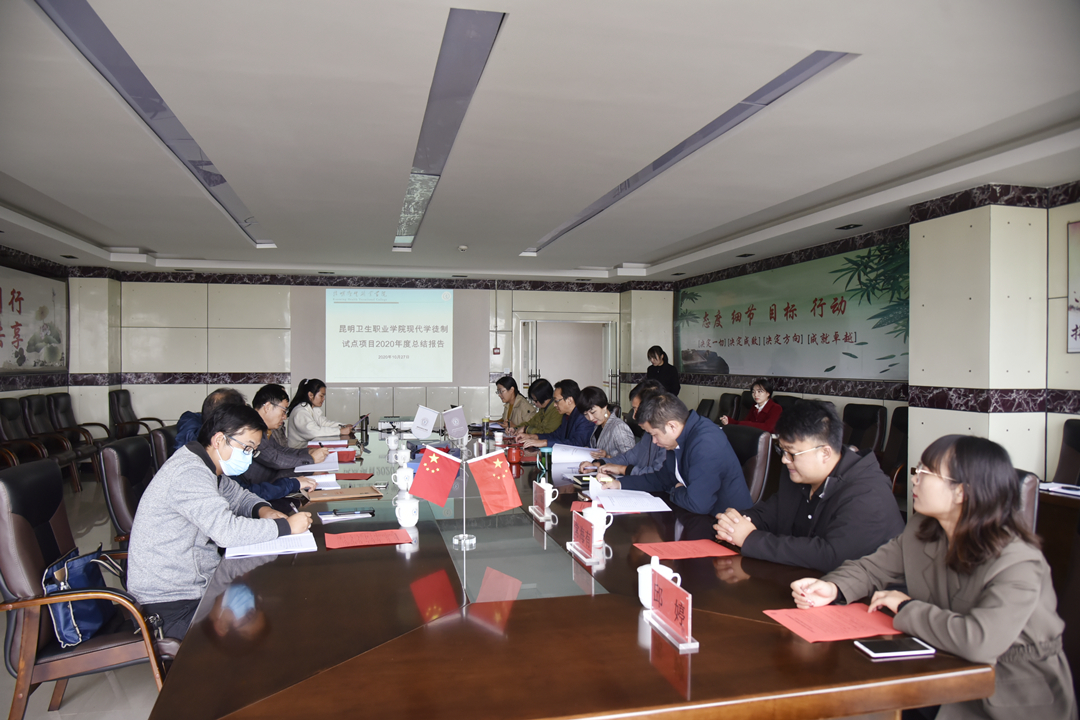 2020年10月28日,由云南省现代学徒制专家委员会主任委员、昆明工业职业技术学院常务副院长刘伟教授带队,专家组成员云南省玉溪卫生学校党委副书记、校长权永红,曲靖医学高等专科学校医学技术系主任尹华玲、云南国土资源职业学院教务处实习实训管理科科长赵心亮一行4人到XK星空就学院现代学徒制试点工作进行检查验收。学院党委副书记张晓刚,党委委员、副院长周平,副院长龙雨霏及相关试点项目和处室负责人参加验收工作。