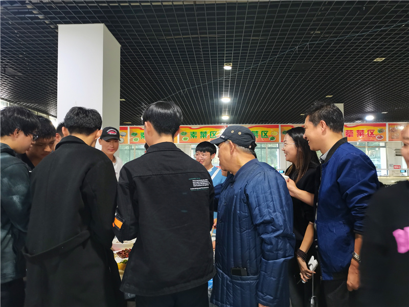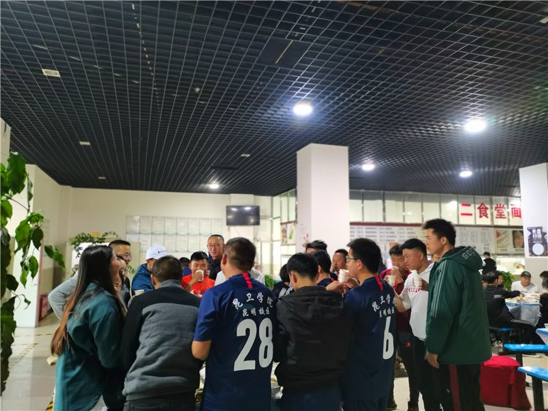 运动完毕,最幸福的莫过于享受一顿晚餐,晋宁校区学生食堂准备了特色美食,学院党委书记、院长龙正昌,副董事长朱秀珍,党委副书记张晓刚,副院长周平、张磊等领导出席了聚餐,与师生亲切交流,让两校区师生感受到昆卫大家庭的幸福和温暖。相信在如此和谐和美和睦的氛围中,每一位年轻教师都会迅速成长。