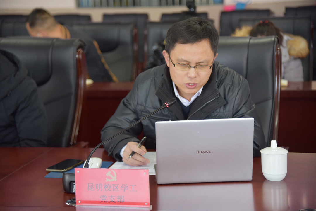 为深入学习贯彻习近平新时代中国特色社会主义思想和党的十九届五中全会精神, 认真落实省委关于党委(党组)书记抓基层党建工作述职评议考核办法有关规定精神,促进学院各党支部书记切实履行抓党建工作第一责任人的职责,提升学院基层党建工作科学化、制度化、规范化水平。1月13日上午,学院2020年度党支部书记抓基层党建工作述职评议会议在图书馆二楼会议室召开。学院党委书记、院长龙正昌,昆明校区执行院长王玲,副书记张晓刚,党委委员、组织部部长、副院长周平,党委委员、副院长陶晓燕,副院长张尤松、陈举国,教学秘书王建松,党委委员、宣传统战部部长王斌;党委职能部门负责人;副处级及以上领导干部;各党支部书记、副书记、委员和部分师生代表共计40余人参会并进行现场测评。会议由学院党委副书记张晓刚同志主持。
